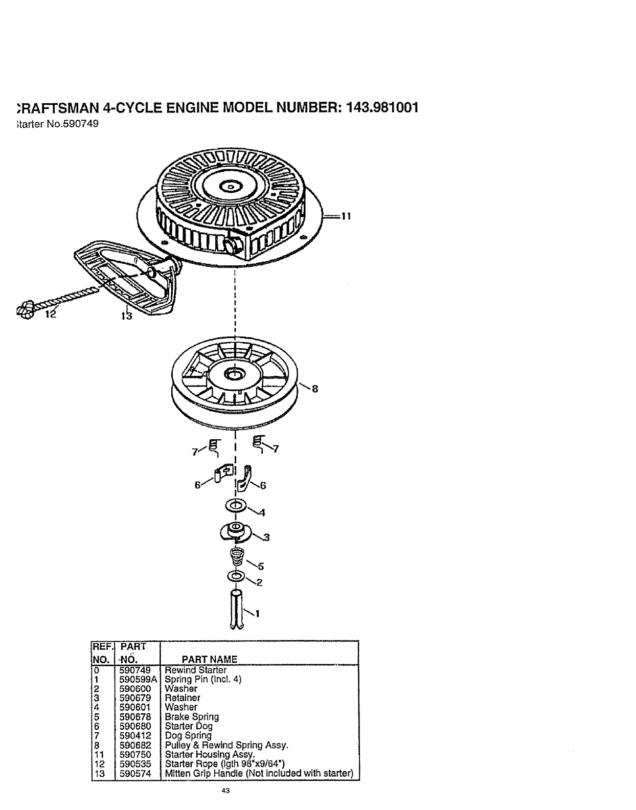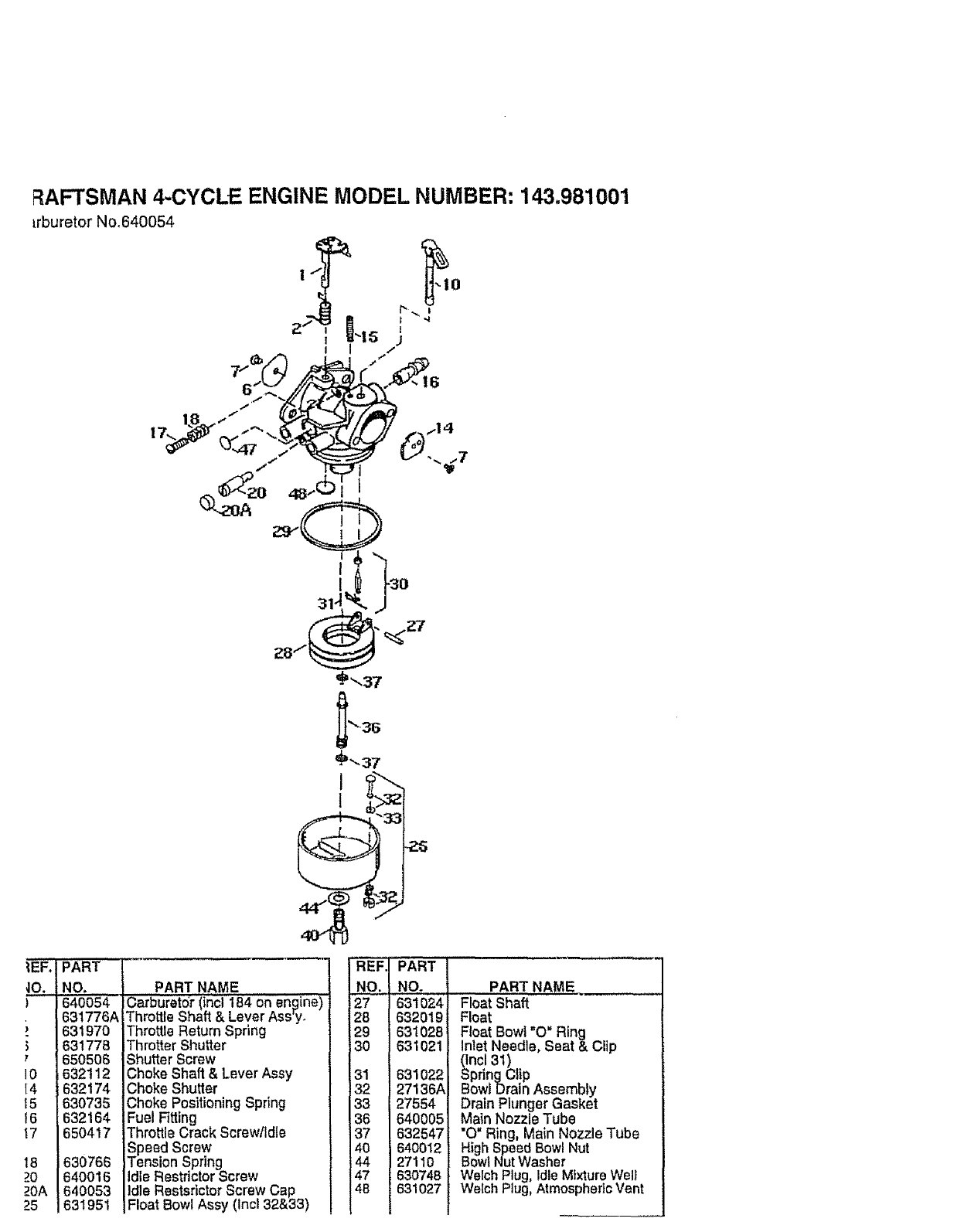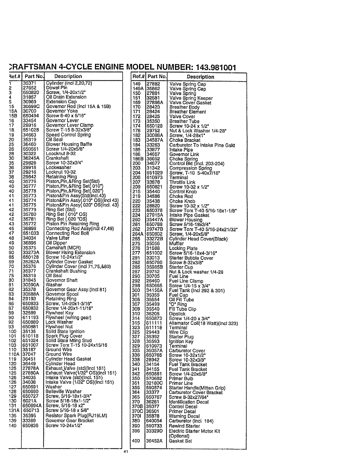 ,RAFTSMAN 4-CYCLE ENGINE MODEL NUMBER: 143.981001