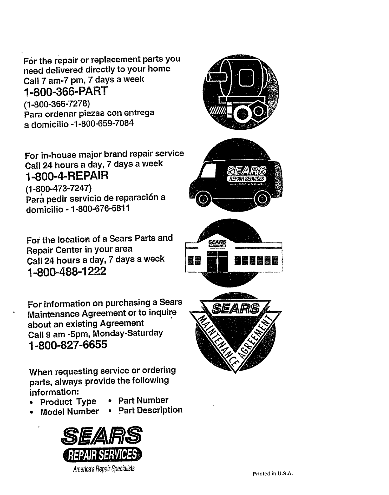 THROWER TO THE NEAREST SEARS SERVICE CENTER/DEPARTMENT IN THE