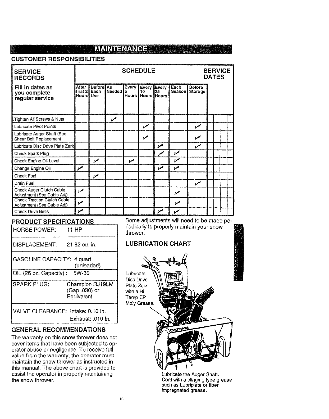 tained, lubricated, and tuned up according to the operating and maintenance instruc-