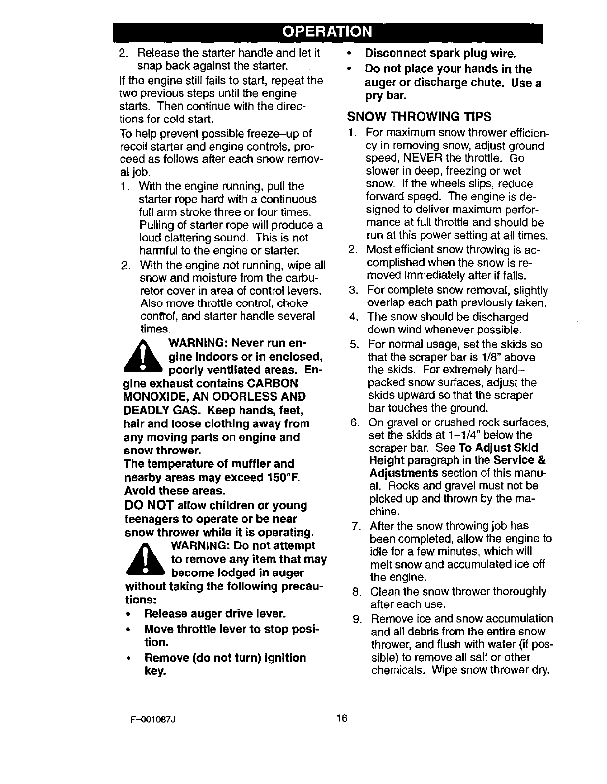 CRAFTSMAN Snowthrower, Gas Manual L0010540 CRAFTSMAN Snowthrower, Gas Owner's Manual, CRAFTSMAN Snowthrower, Gas installation guides