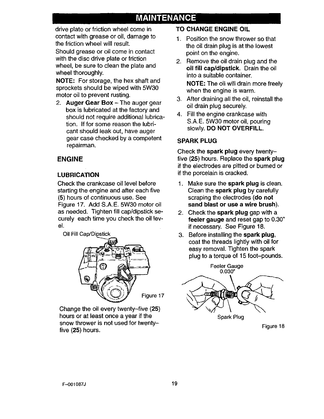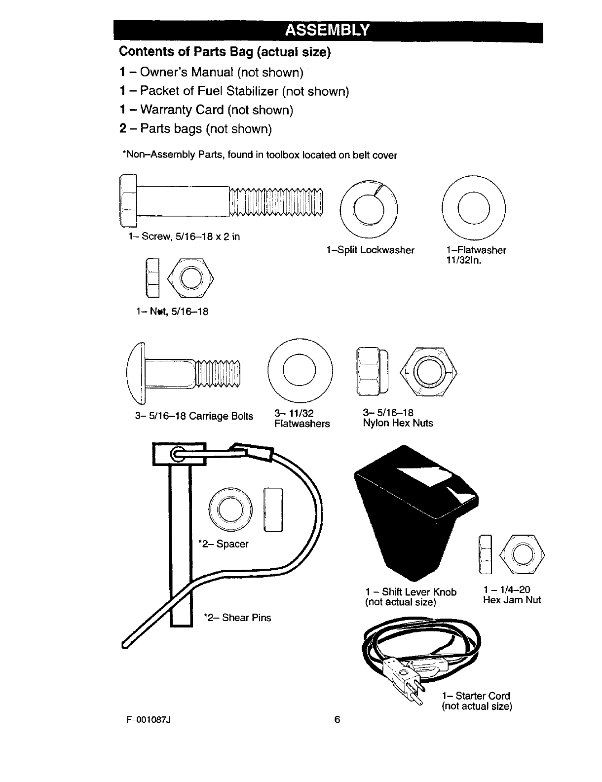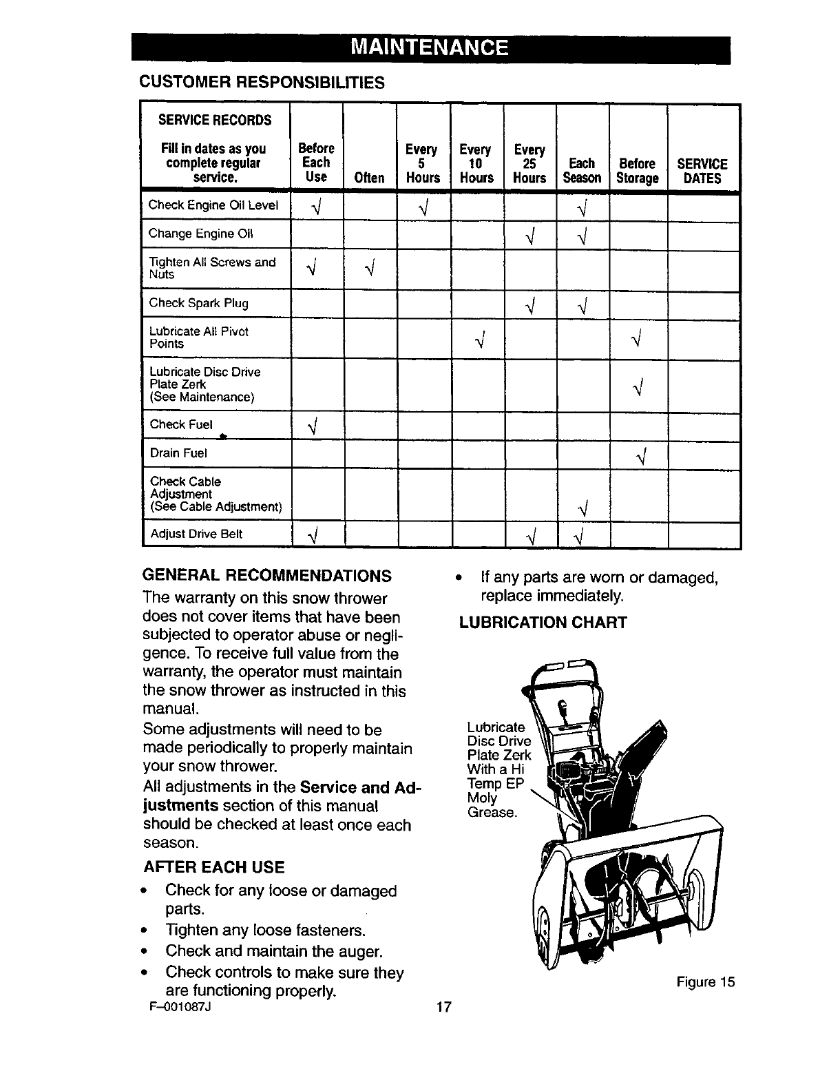 •Items which become worn during normal use, such as spark plugs, drive belts and shear