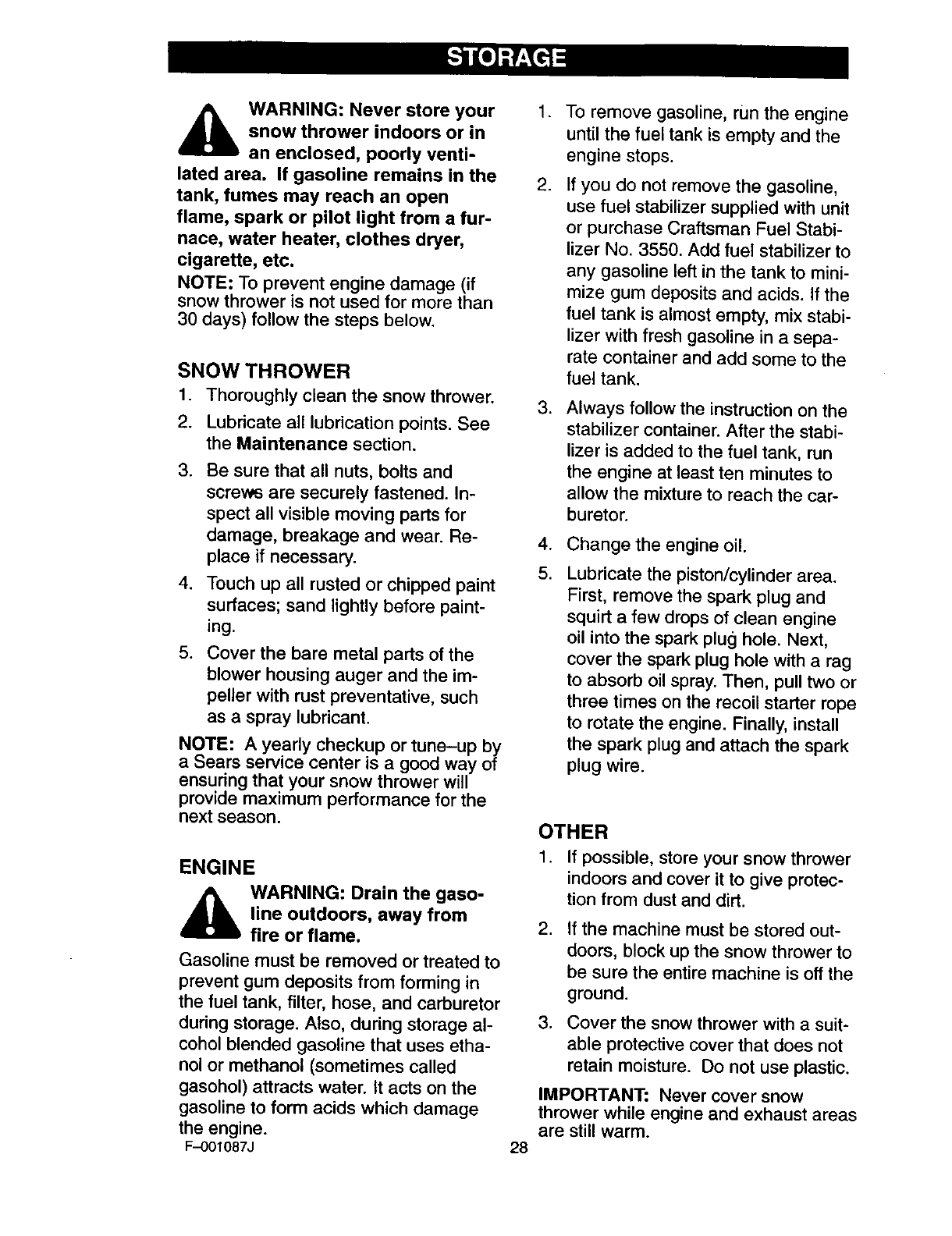 LIMITED "13NO--YEAR WARRANTY ON CRAFTSMAN SNOW THROWER