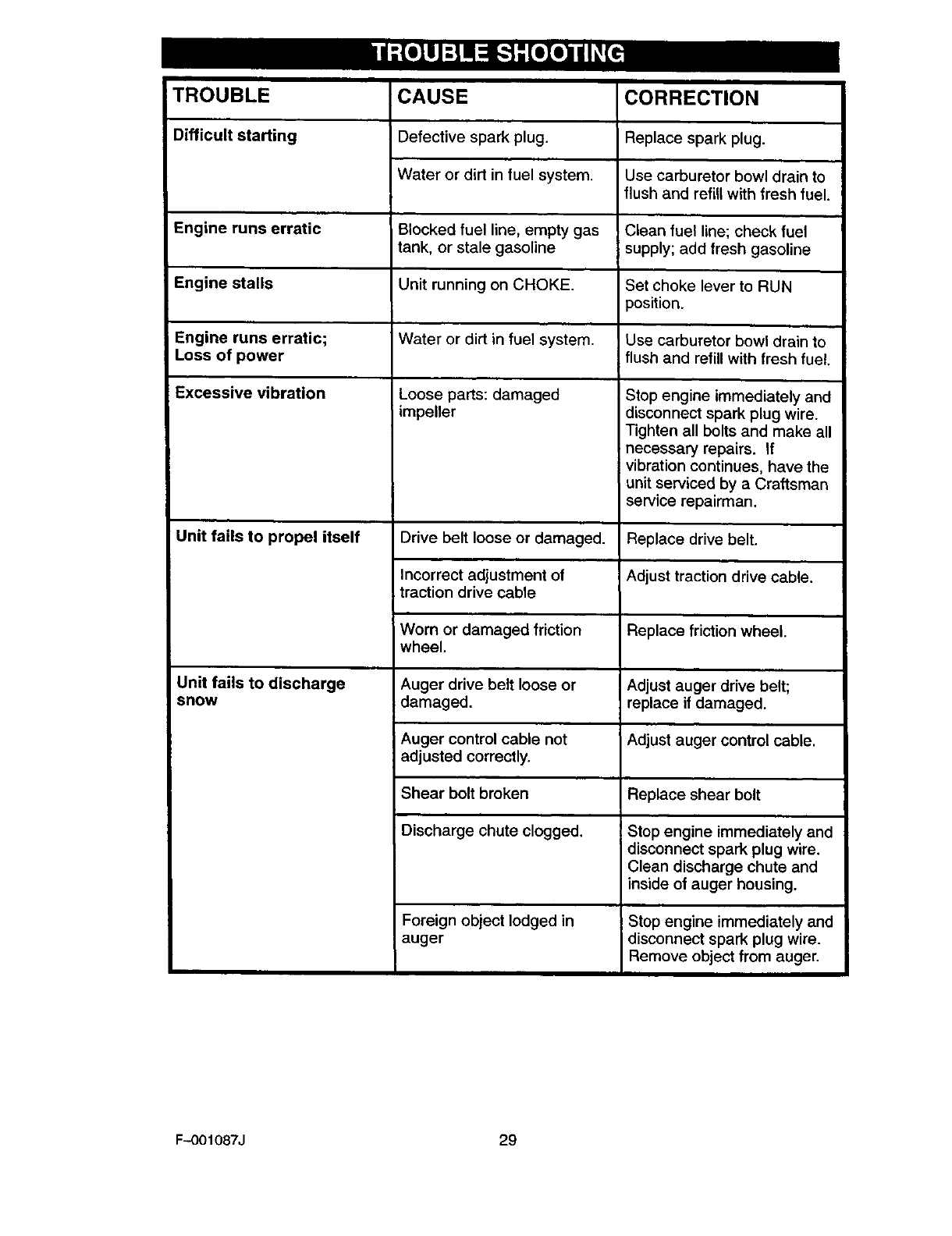THROWERTO THE NEAREST CRAFTSMAN SERVICE CENTER/DEPARTMENT IN
