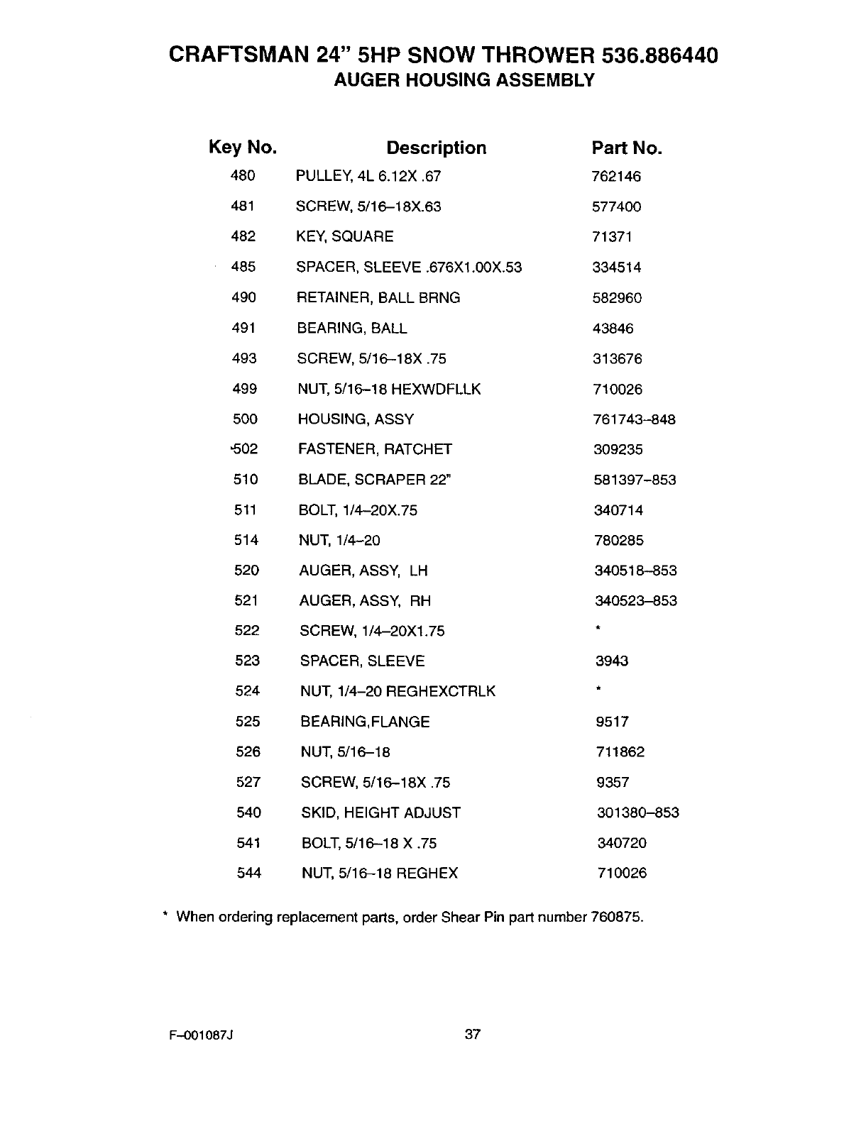 User Manual: Craftsman 536886440 536886440 CRAFTSMAN CRAFTSMAN 5HP SNOW THROWER - Manuals and Guides View the owners manual for your CRAFTSMAN CRAFTSMAN 5HP SNOW THROWER #536886440. Home:Lawn & Garden Parts:Craftsman Parts:Craftsman CRAFTSMAN 5HP SNOW THROWER Manual