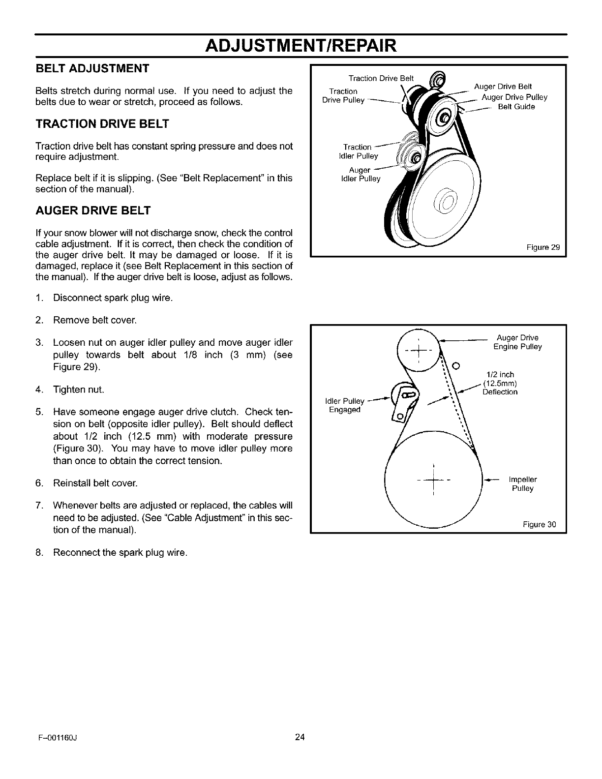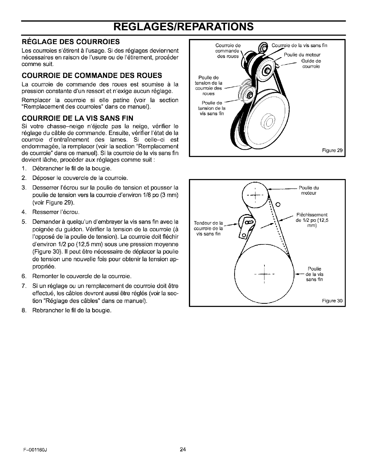 Pas d'ejection de la neige Courroie de vis sans fin detendue ou Regler ta courroie de la vis sans fin ou; la remplacer si