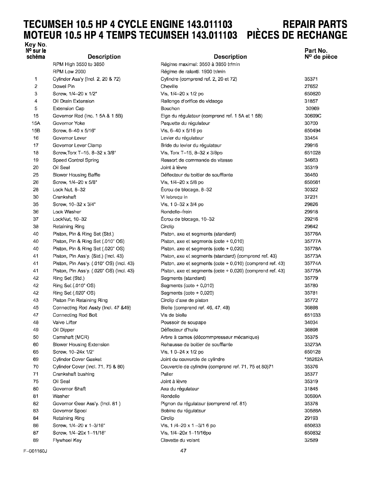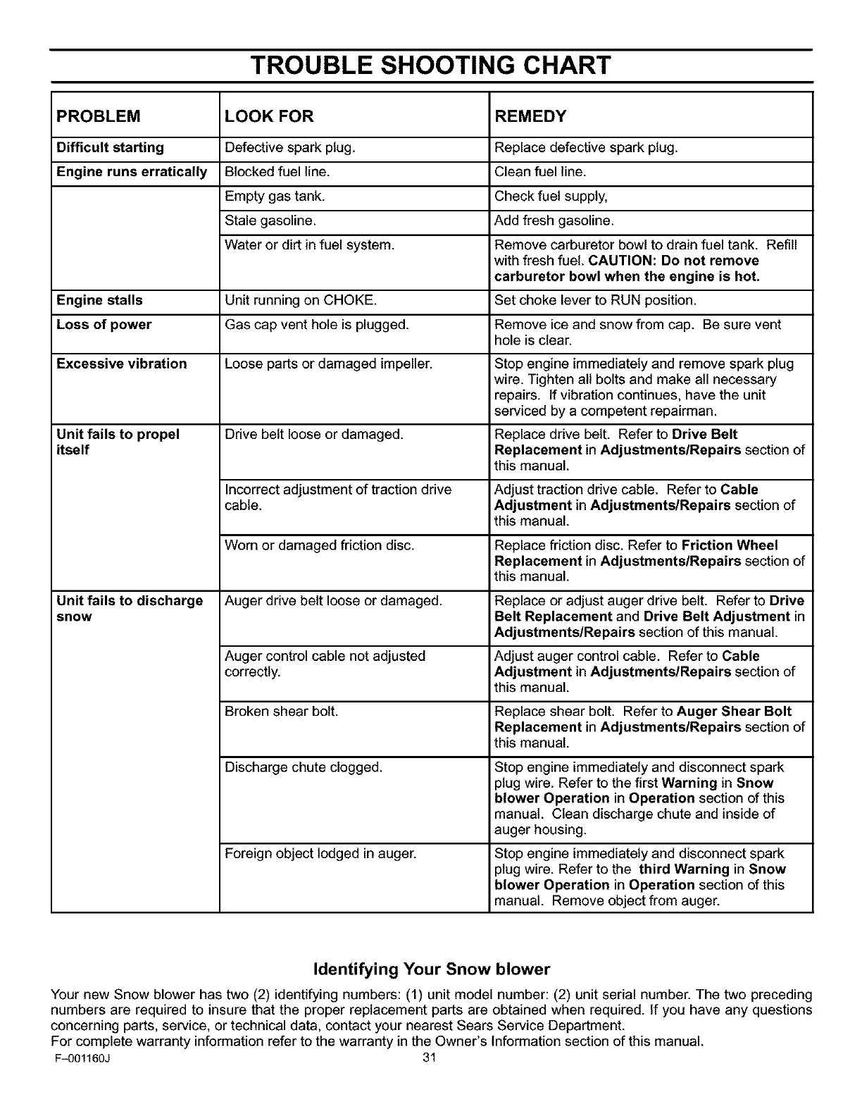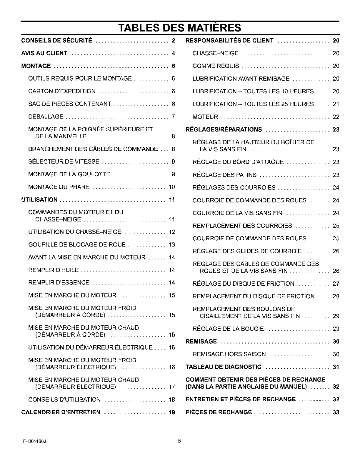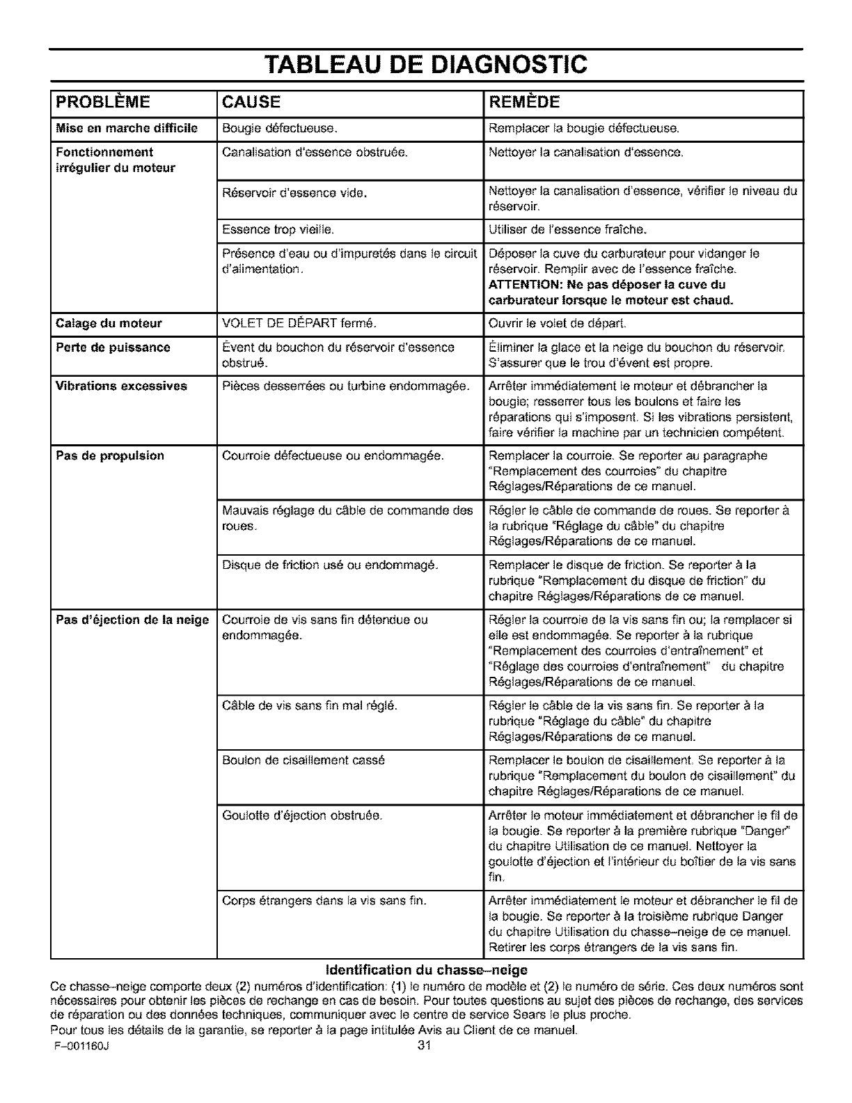 Ce chasse-neige cemporte deux (2) numeros d'identificetion (1) le numero de modele et (2) le numero de serie. Ces deux numeros sont