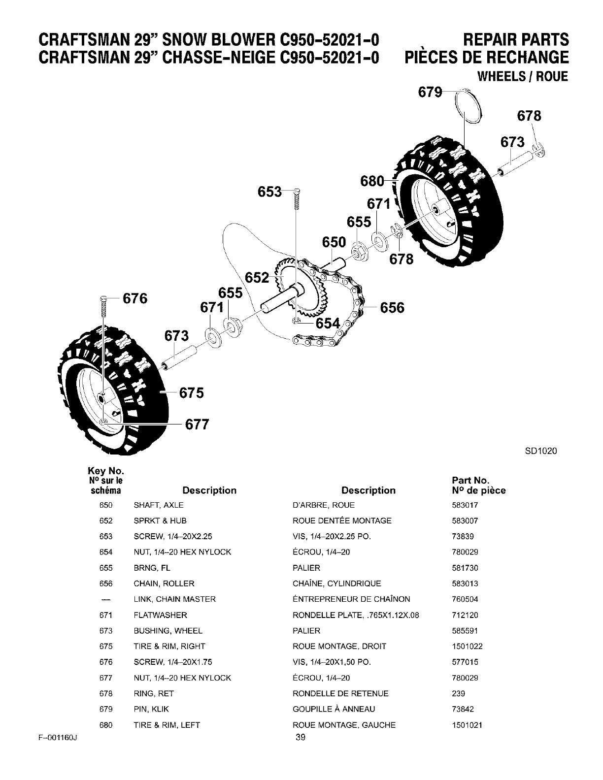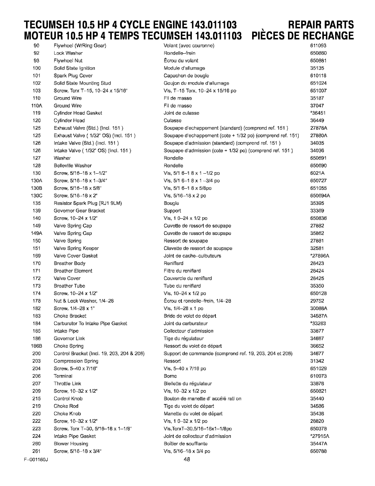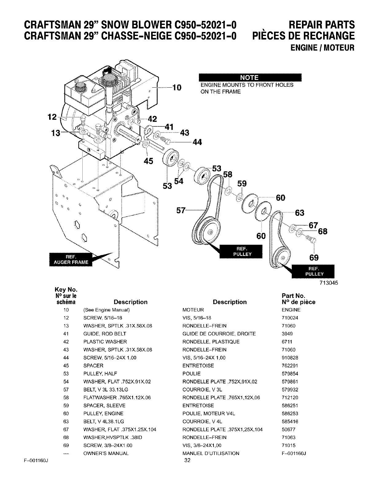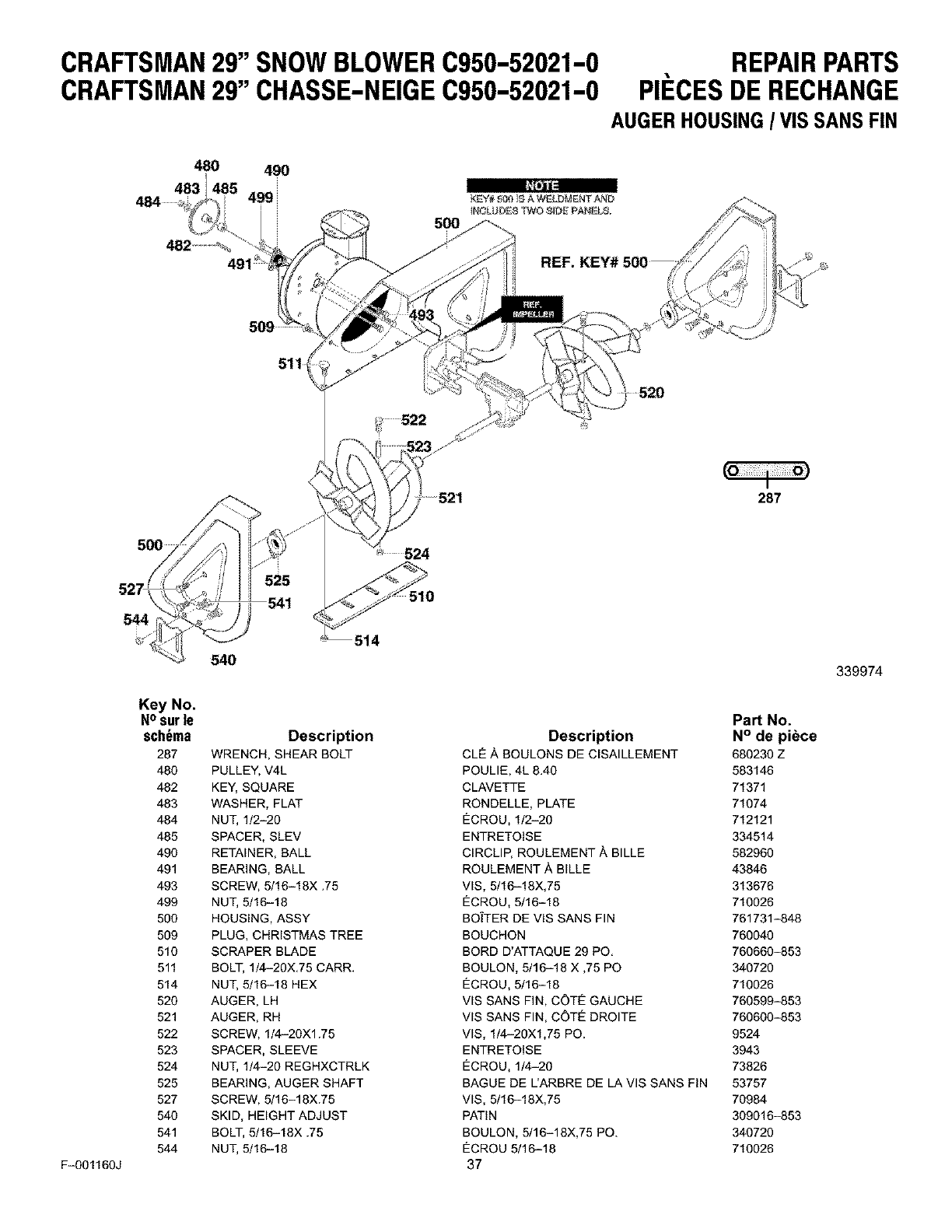 Ce chasse-neige cemporte deux (2) numeros d'identificetion (1) le numero de modele et (2) le numero de serie. Ces deux numeros sont