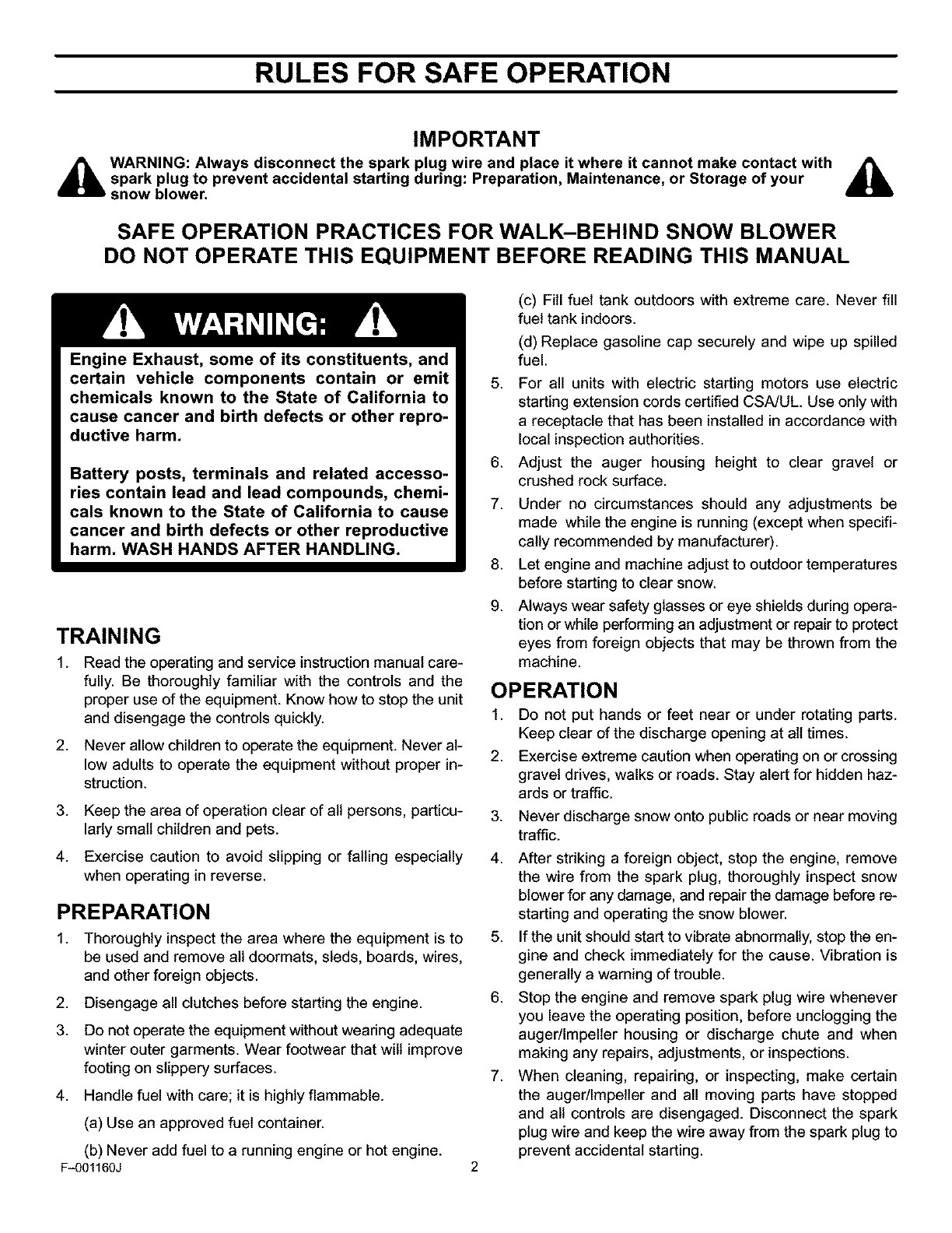 SAFE OPERATION PRACTICES FOR WALK-BEHIND SNOW BLOWER