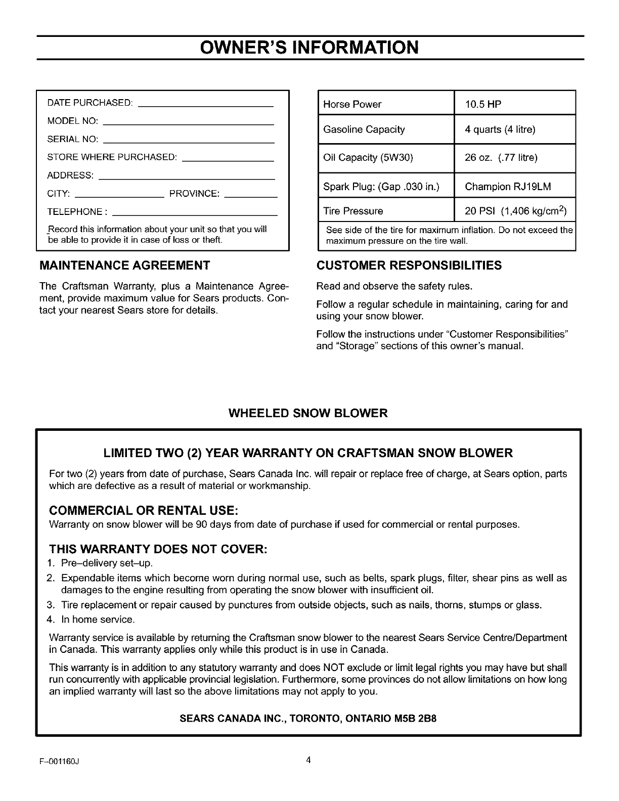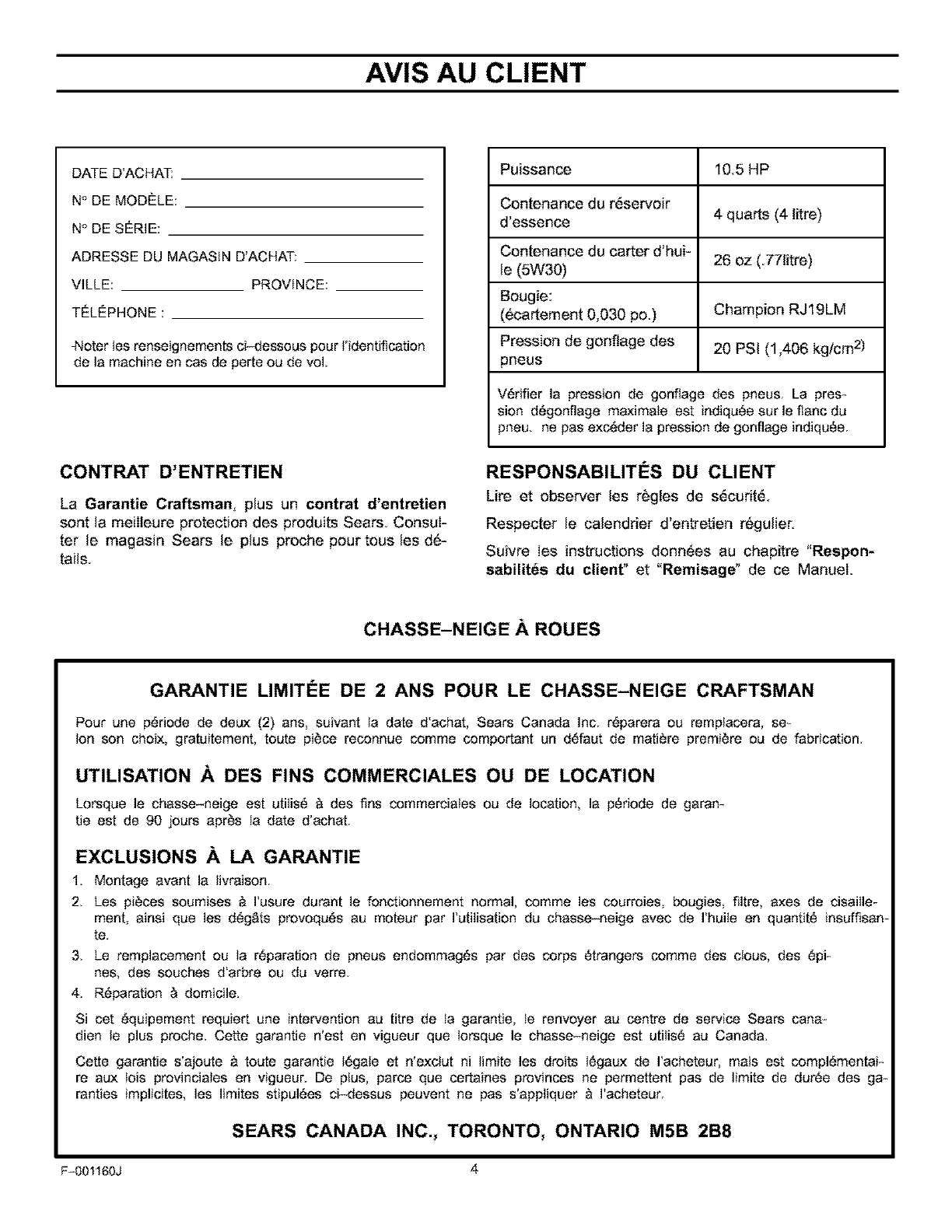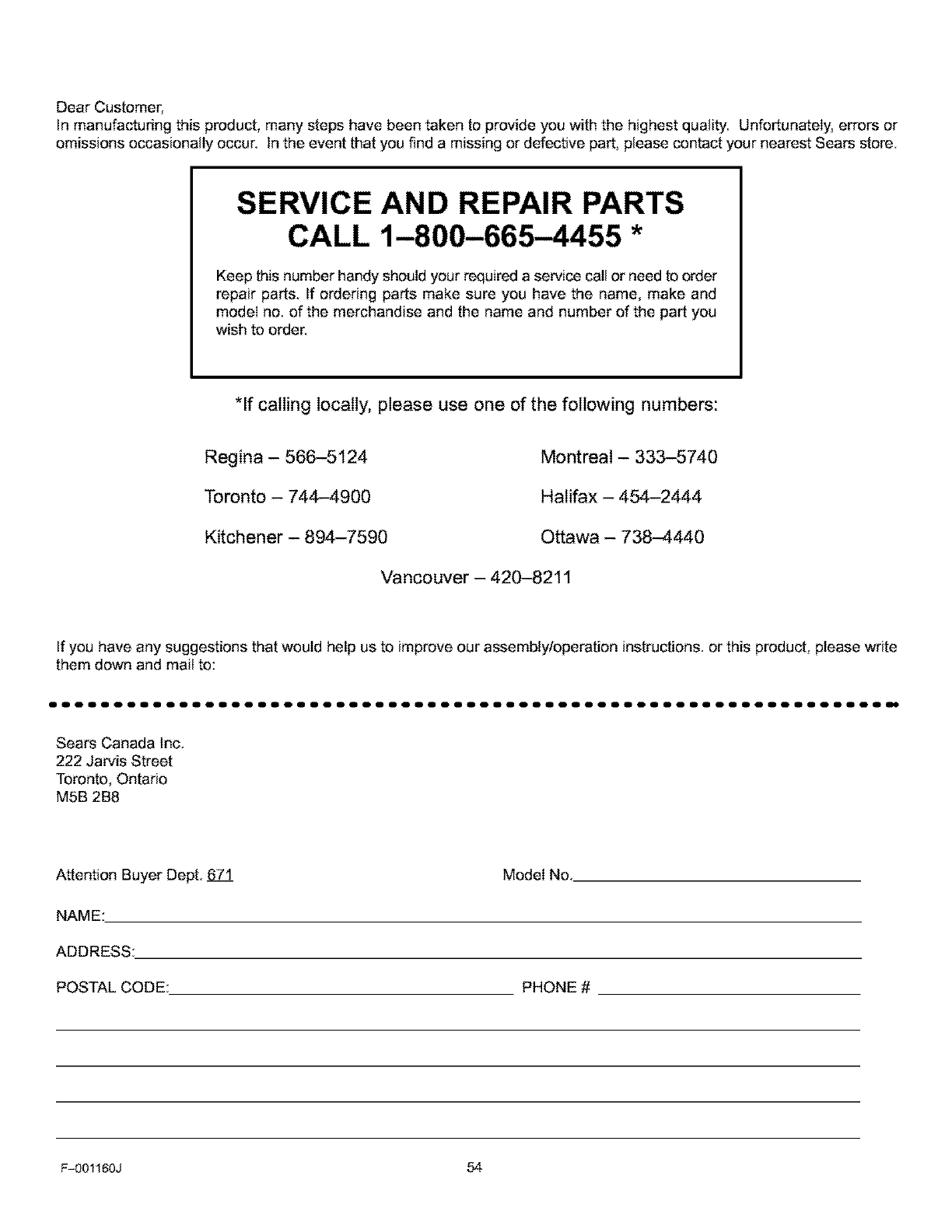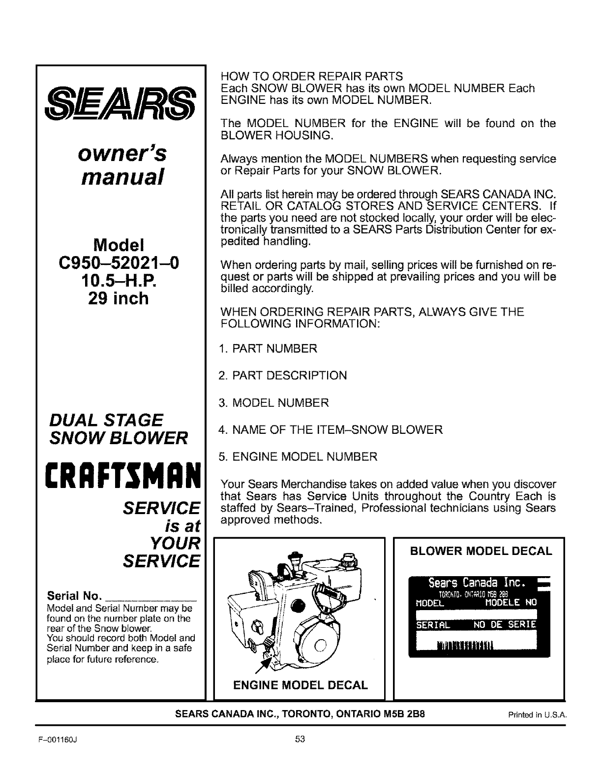 F-001160J SEARS CANADA INC., TORONTO, ONTARIO M5B 2B8 PrintedinU.S.A,