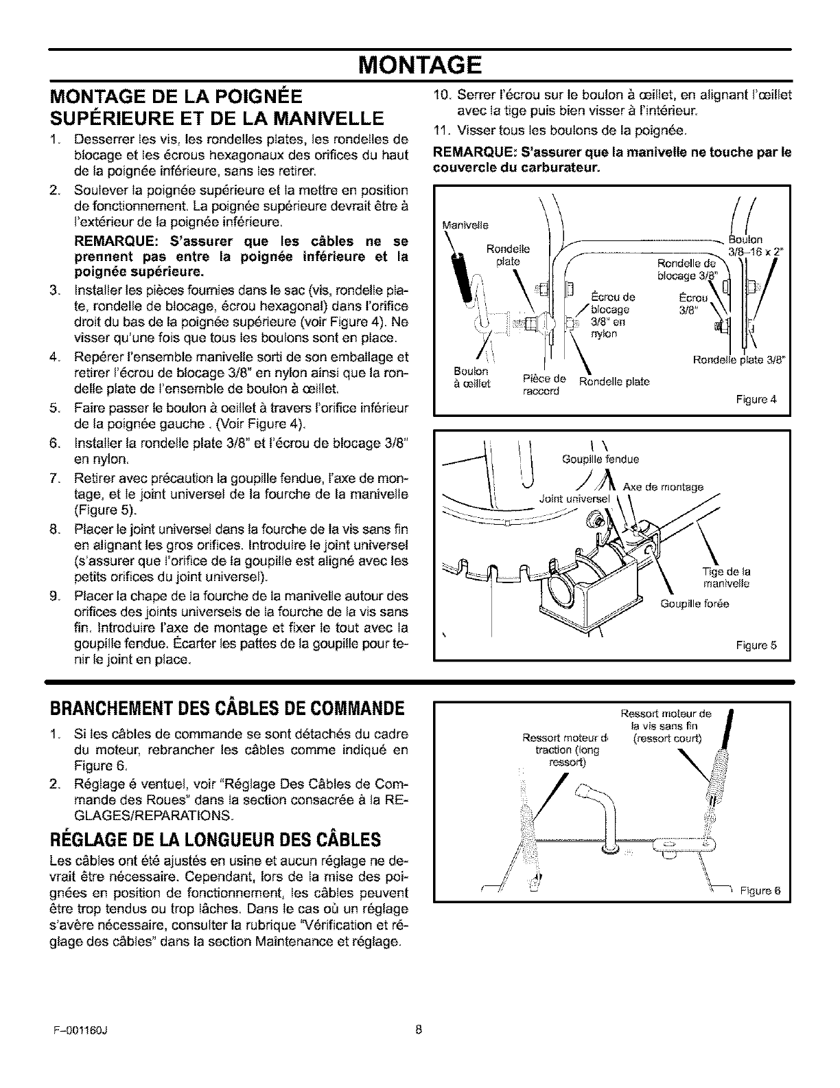 Pas de propulsion Courroie defectueuse ou endommagee. Remptacer la ceurroie. Se reporter au paragraphe