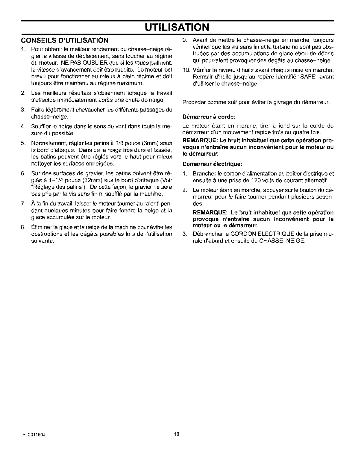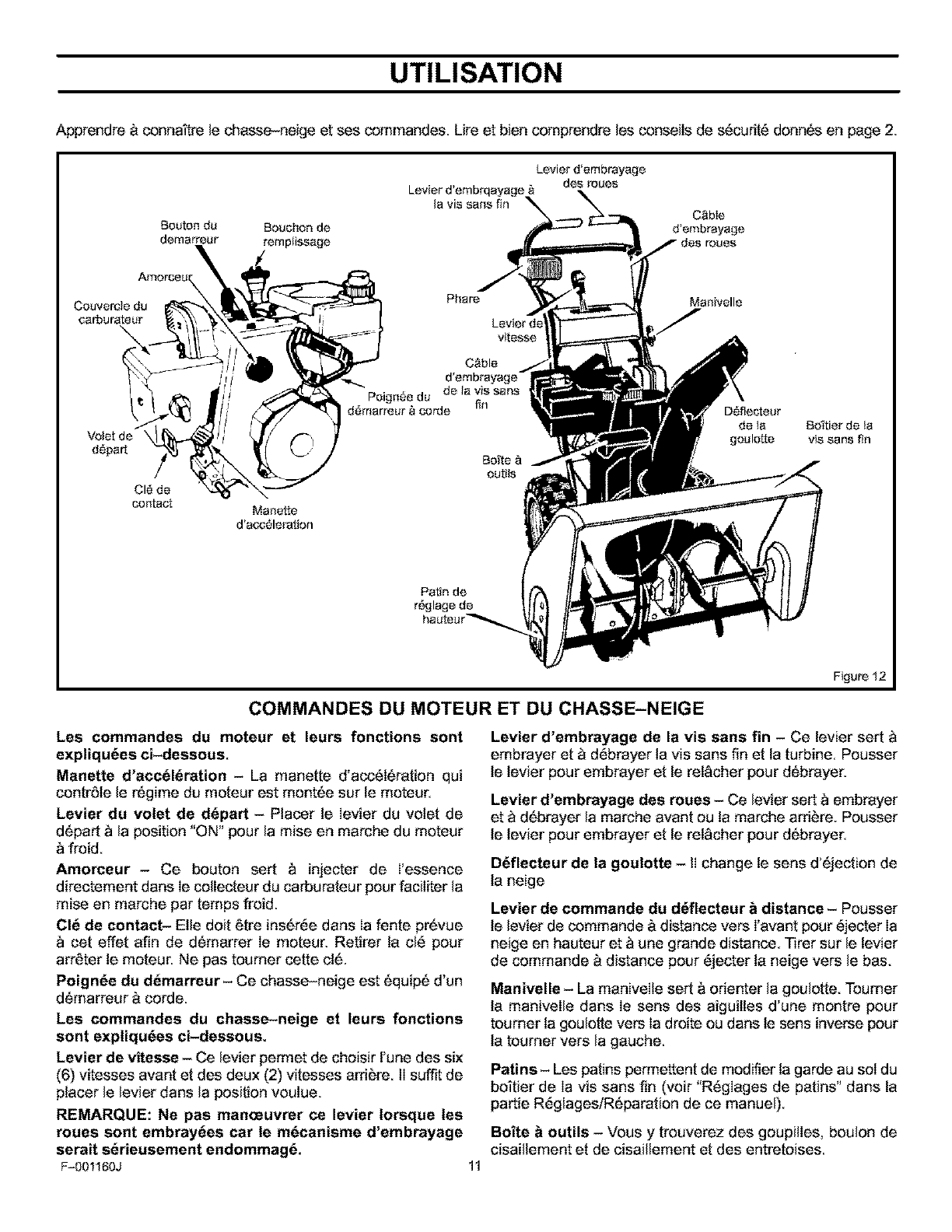 du chapitre Utilisation du chasse-neige de ce manuel,