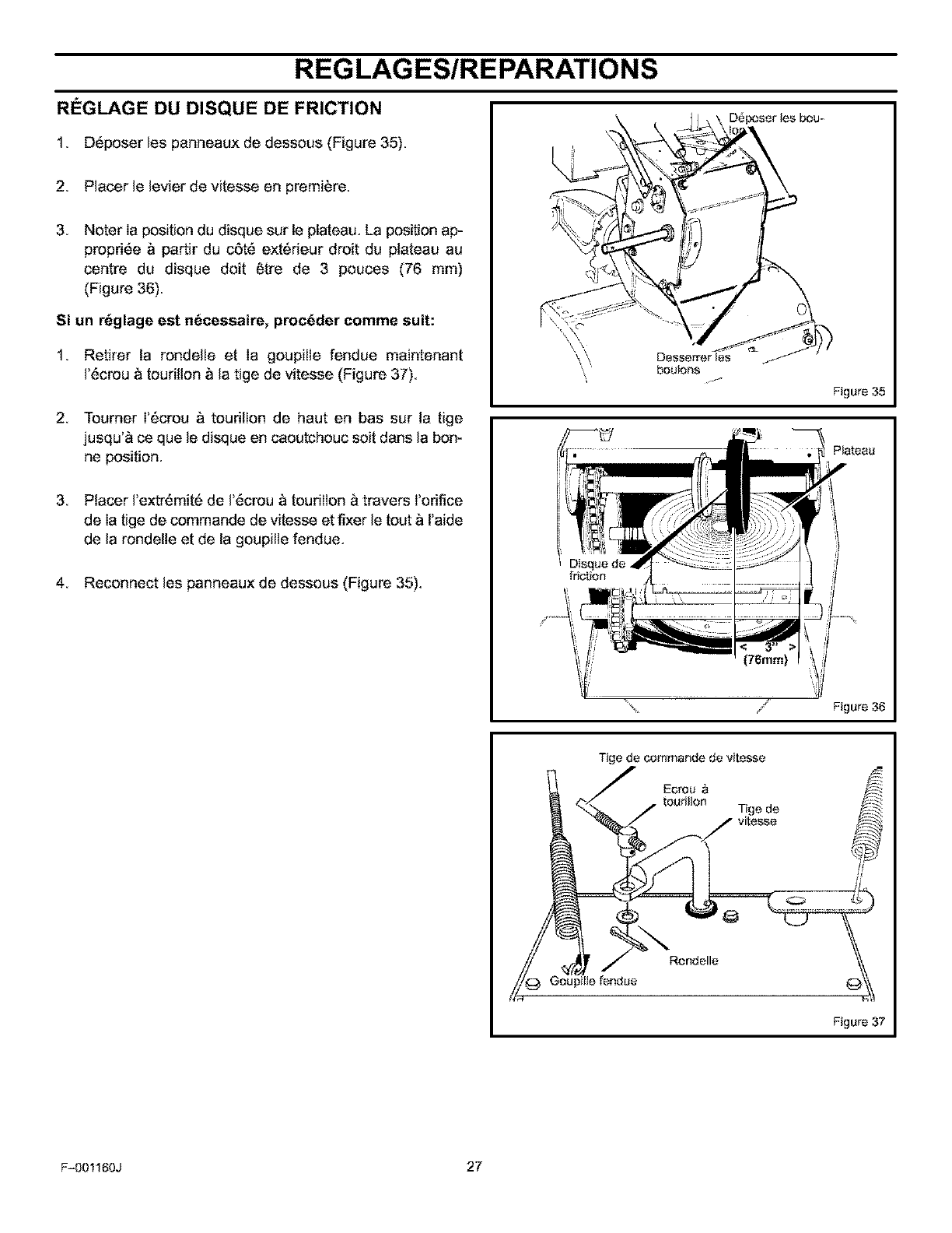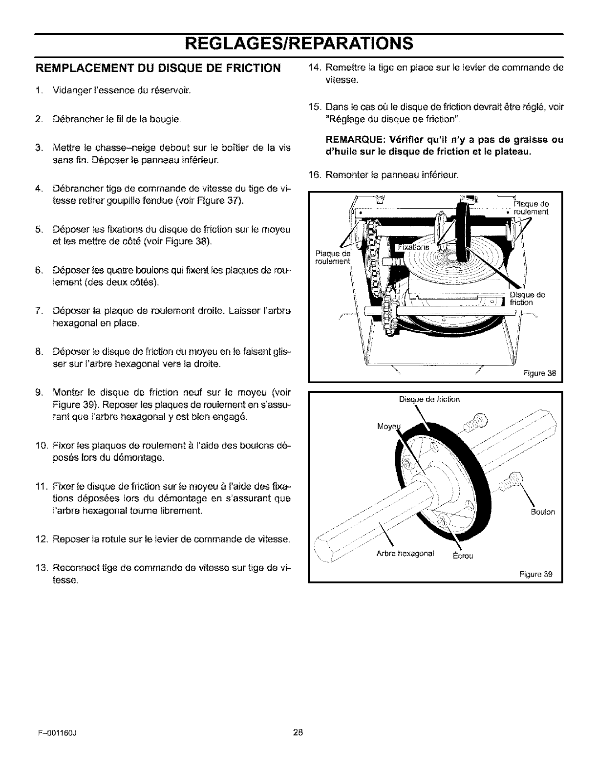 Disque de friction use ou endommag6 Remptacer le disque de friction. Se reporter a la