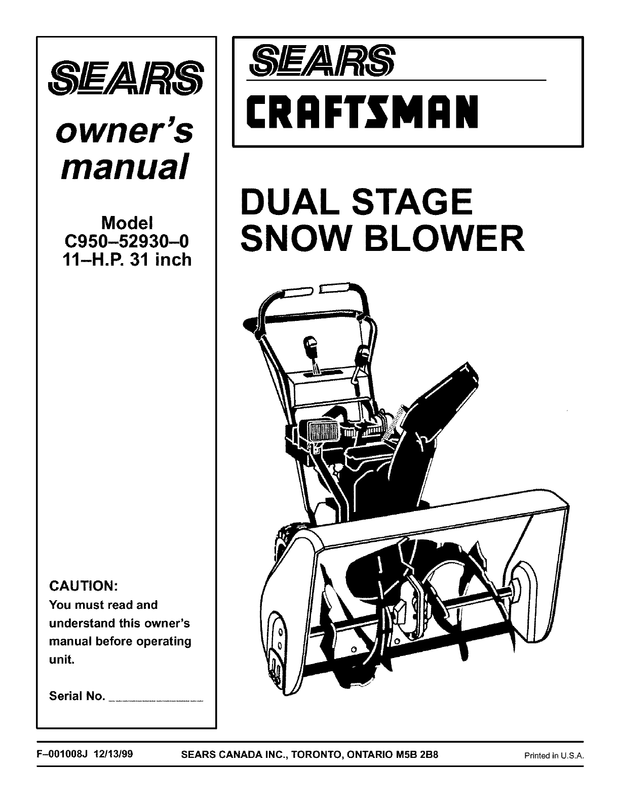 Craftsman 536886520 User Manual SNOW BLOWER Manuals And Guides L0109123