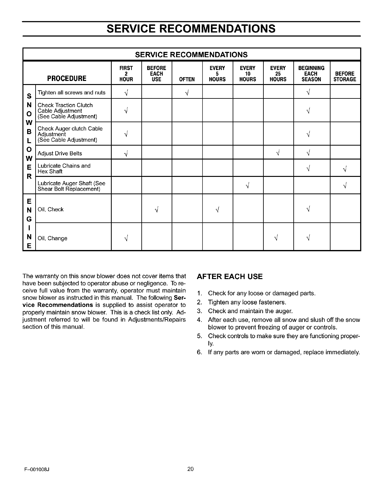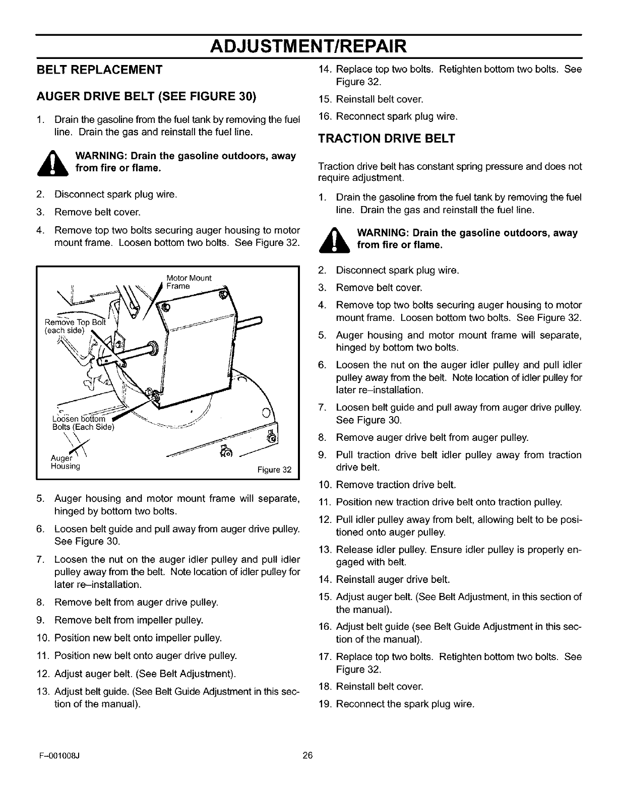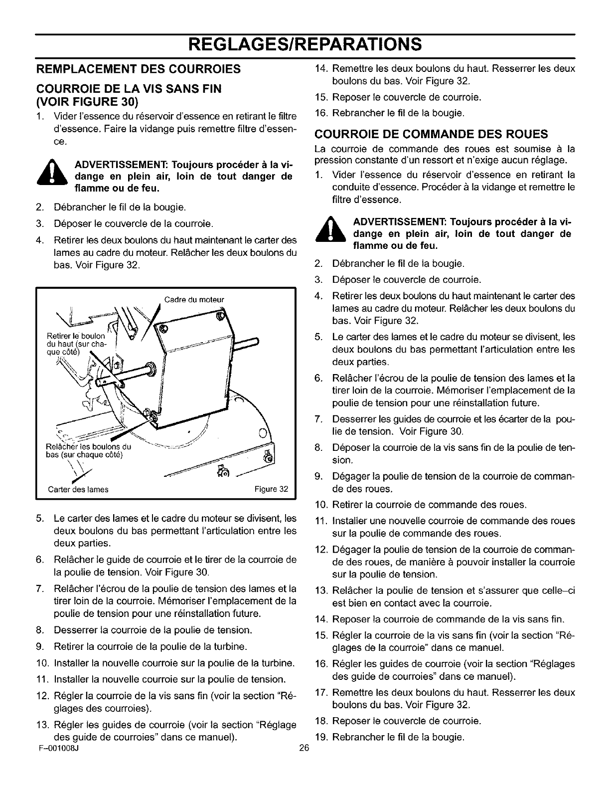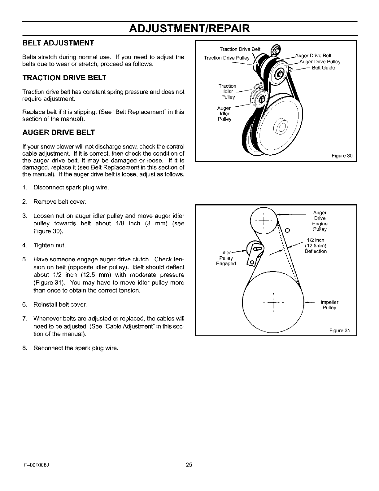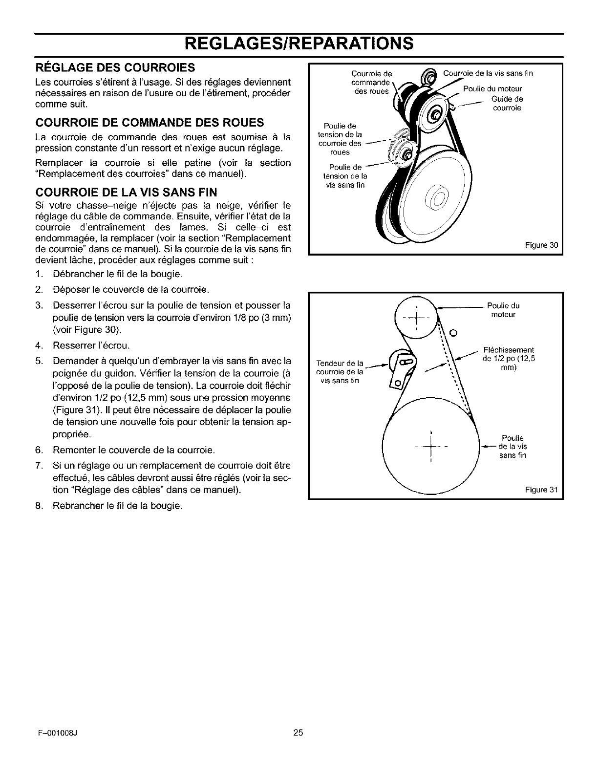 Pas d'6jection de la neige Courroie de vis sans fin d6tendue ou R6gler la courroie de la vis sans fin ou; la remplacer si