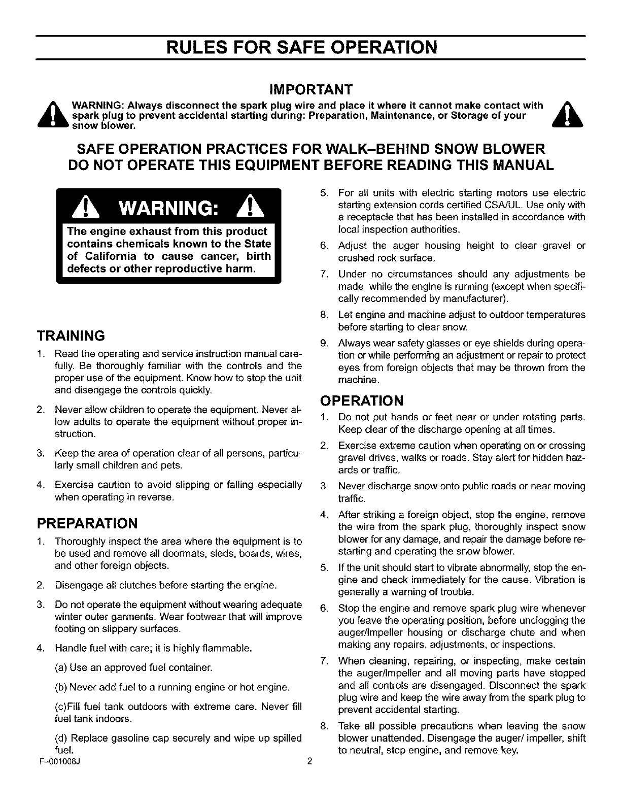 SAFE OPERATION PRACTICES FOR WALK-BEHIND SNOW BLOWER