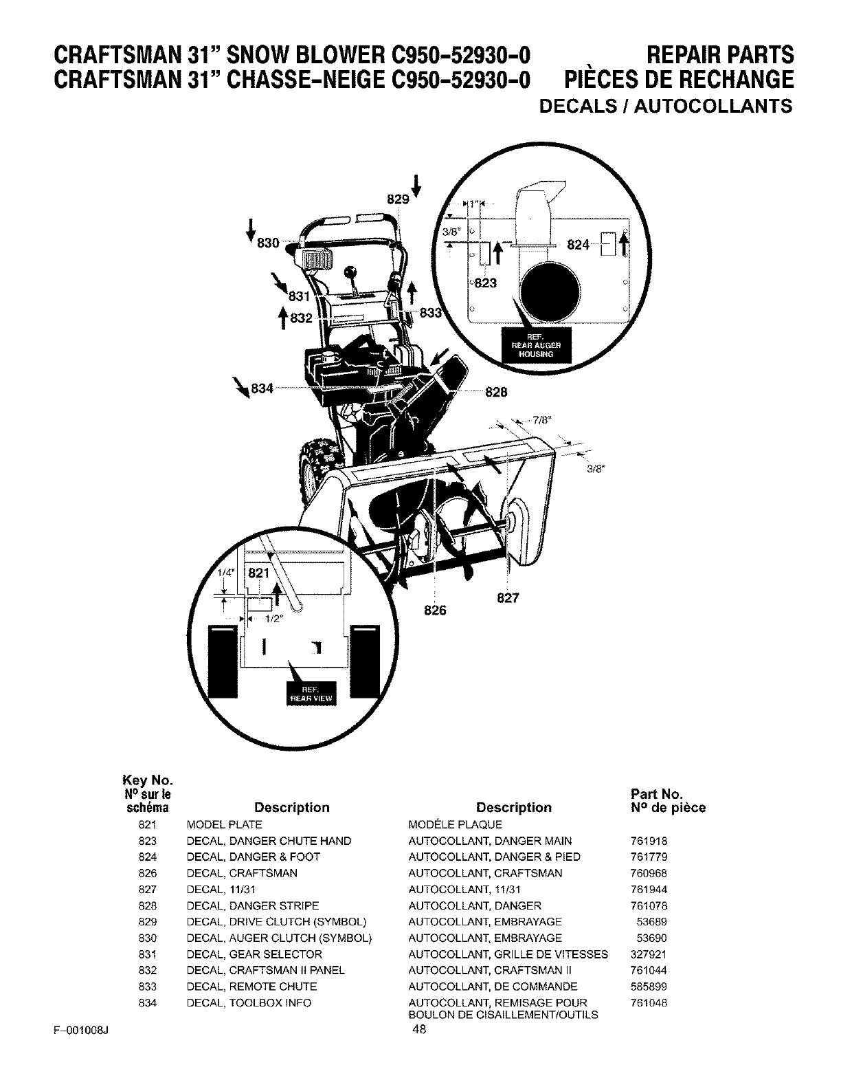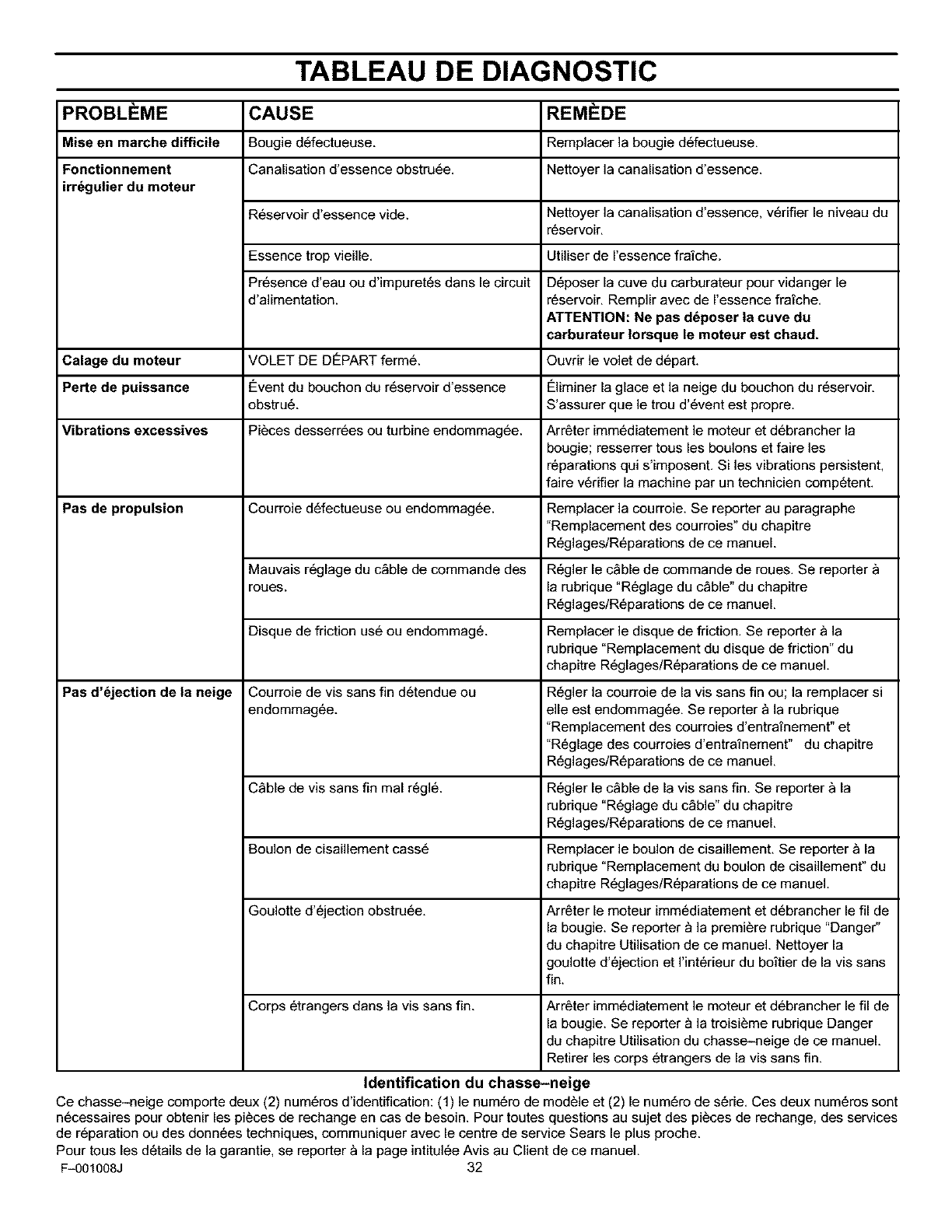 Ce chasse-neige cemporte deux (2) num6ros d'identification: (1) le num6ro de modele et (2) le numero de s6rie. Ces deux num6ros sent