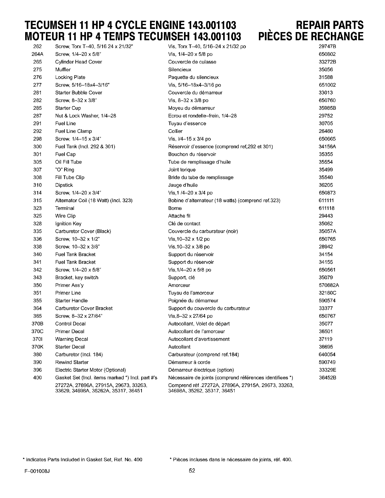 ainsi que le nomet le numero de la pi6ce que vous d6sirez commander.