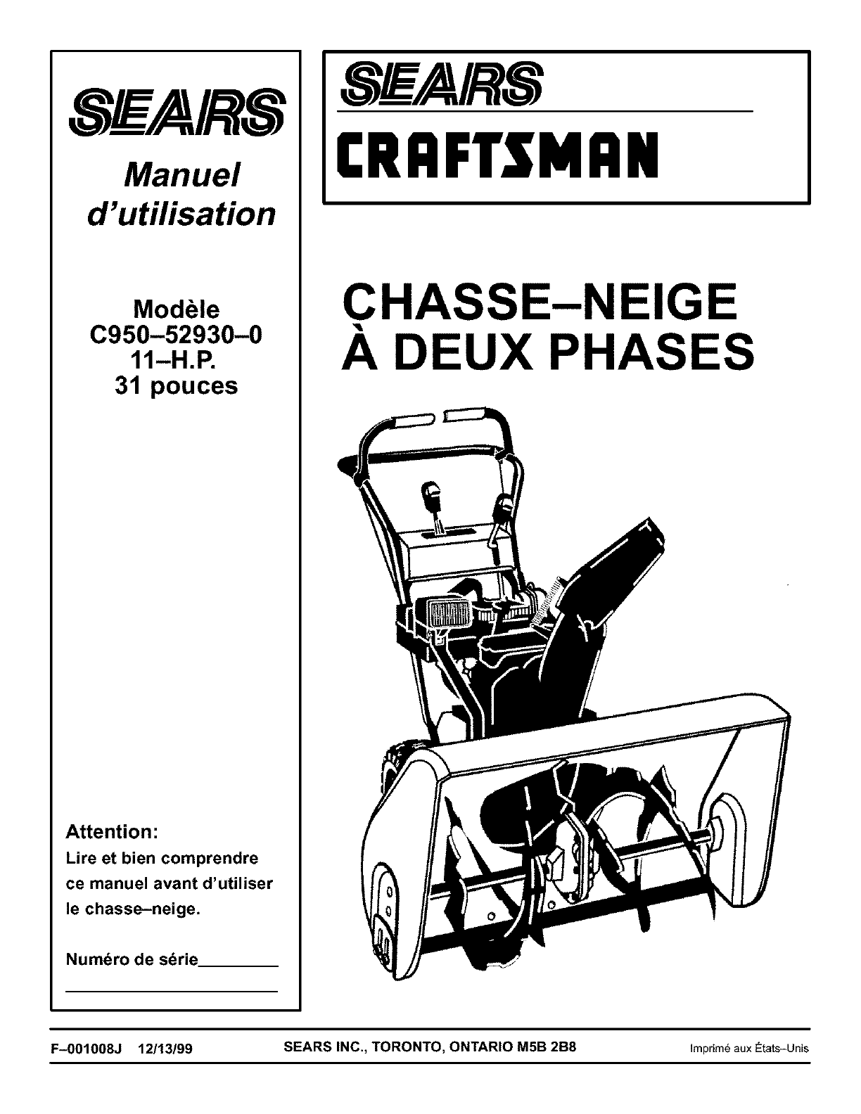 F-001008J 12/13/99 SEARS CANADA INC., TORONTO, ONTARIO M5B 2B8 PrintedinU.S.A.