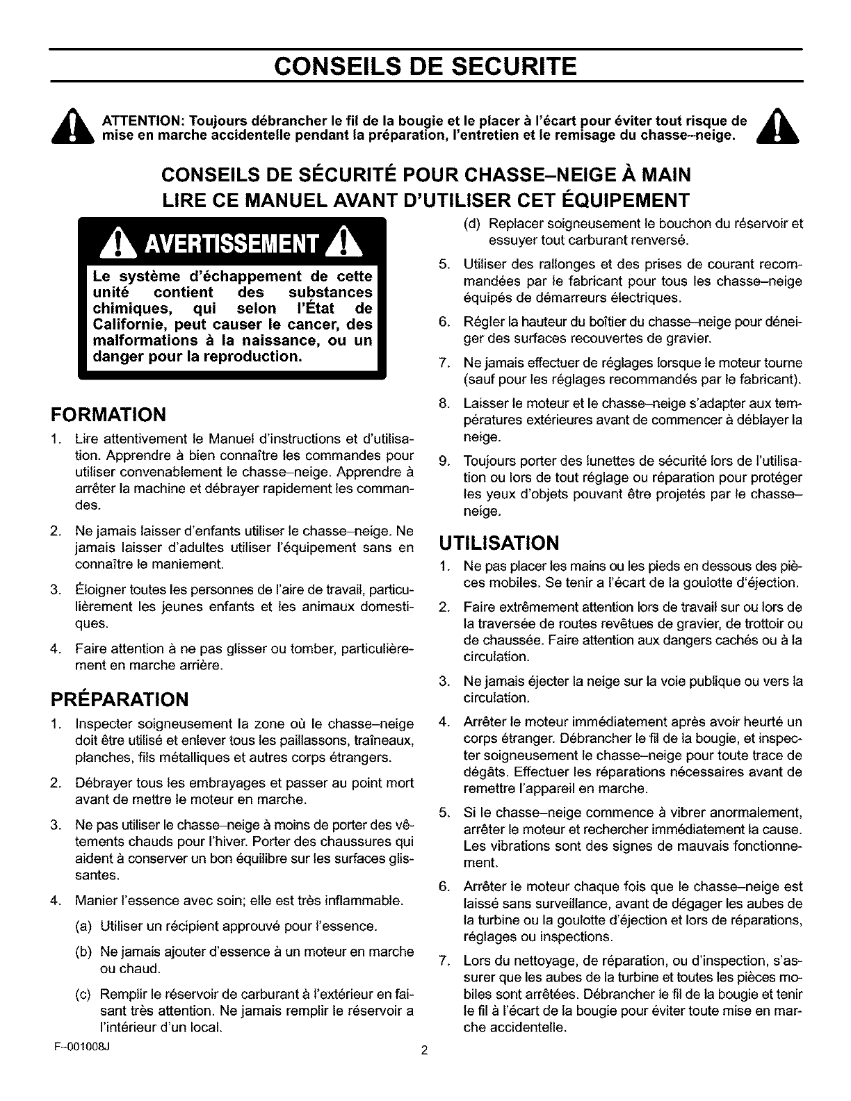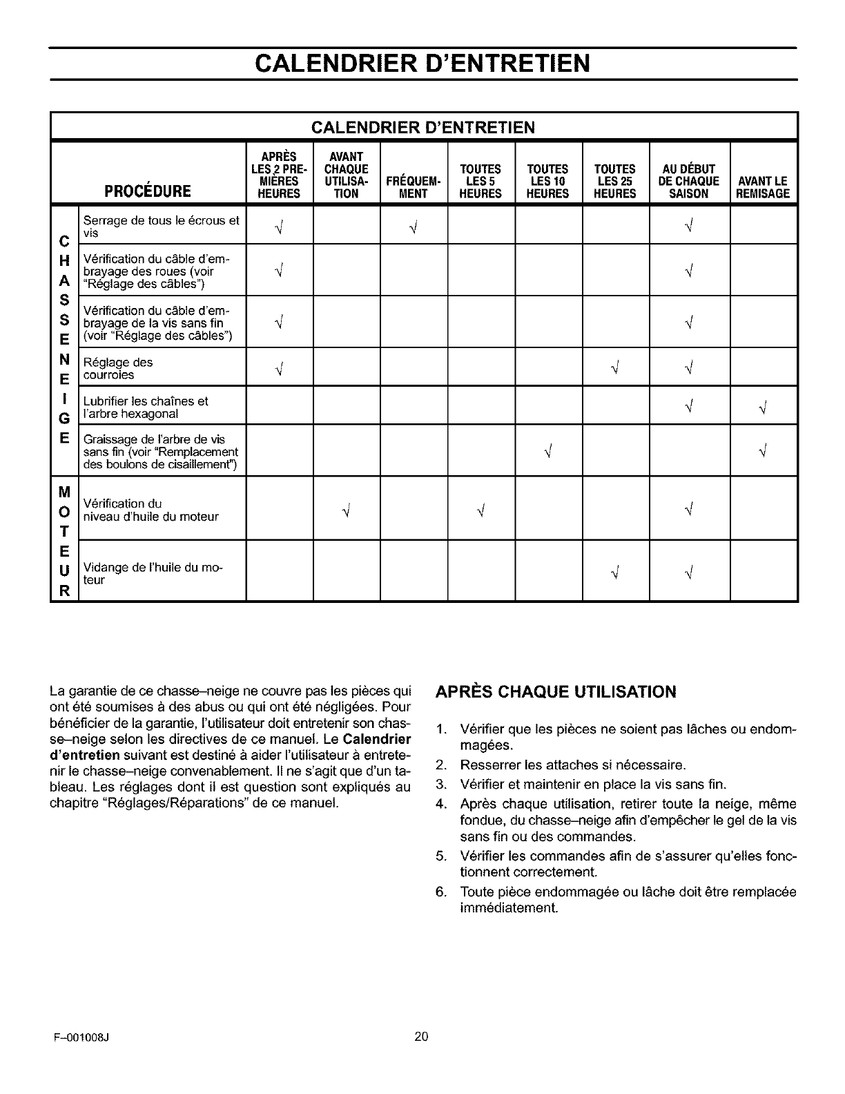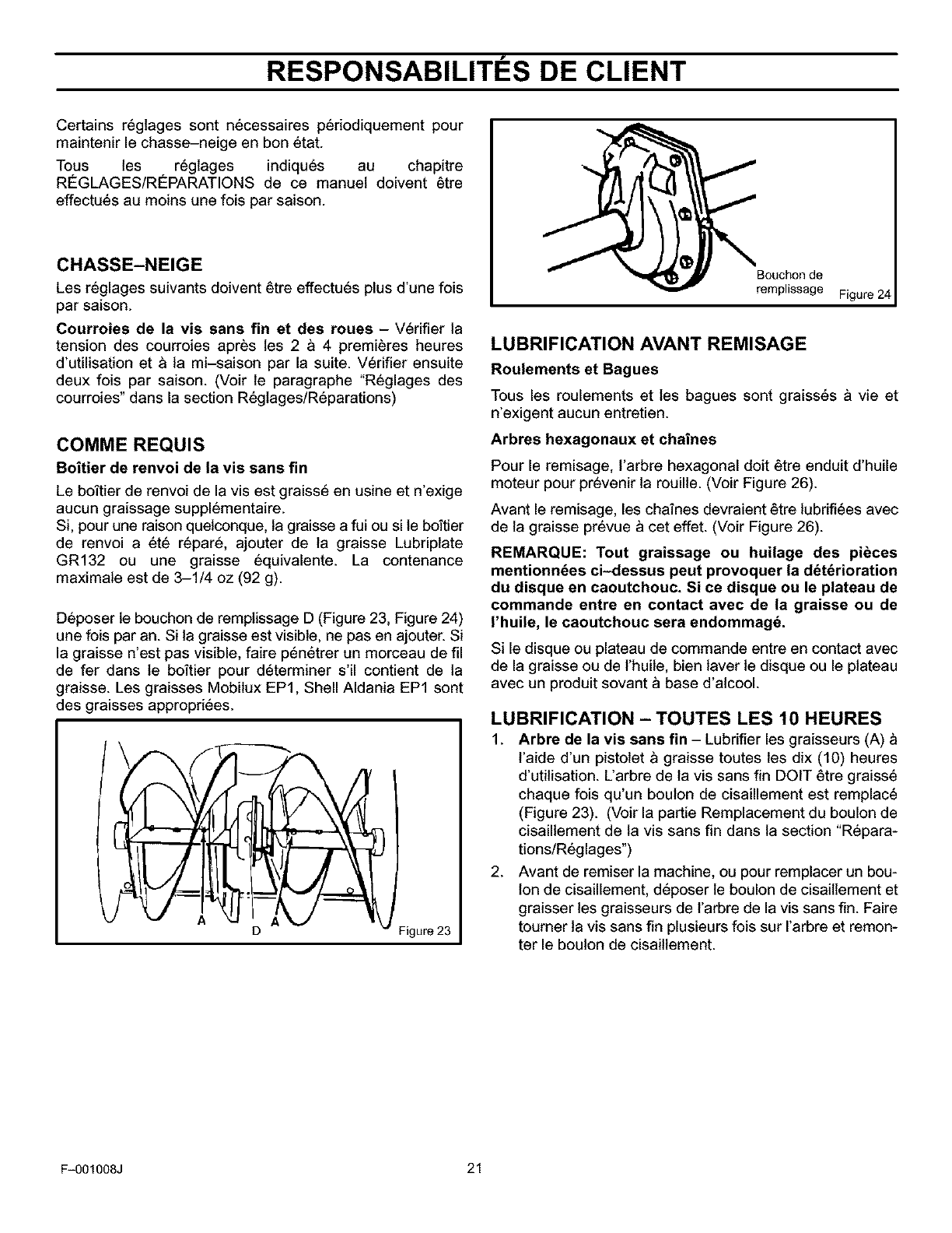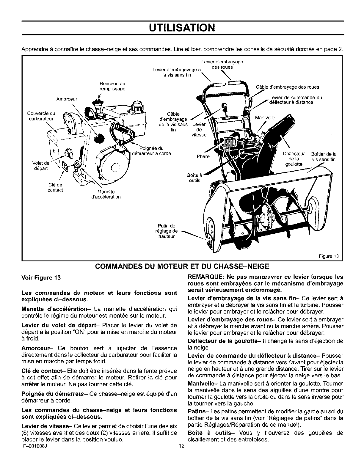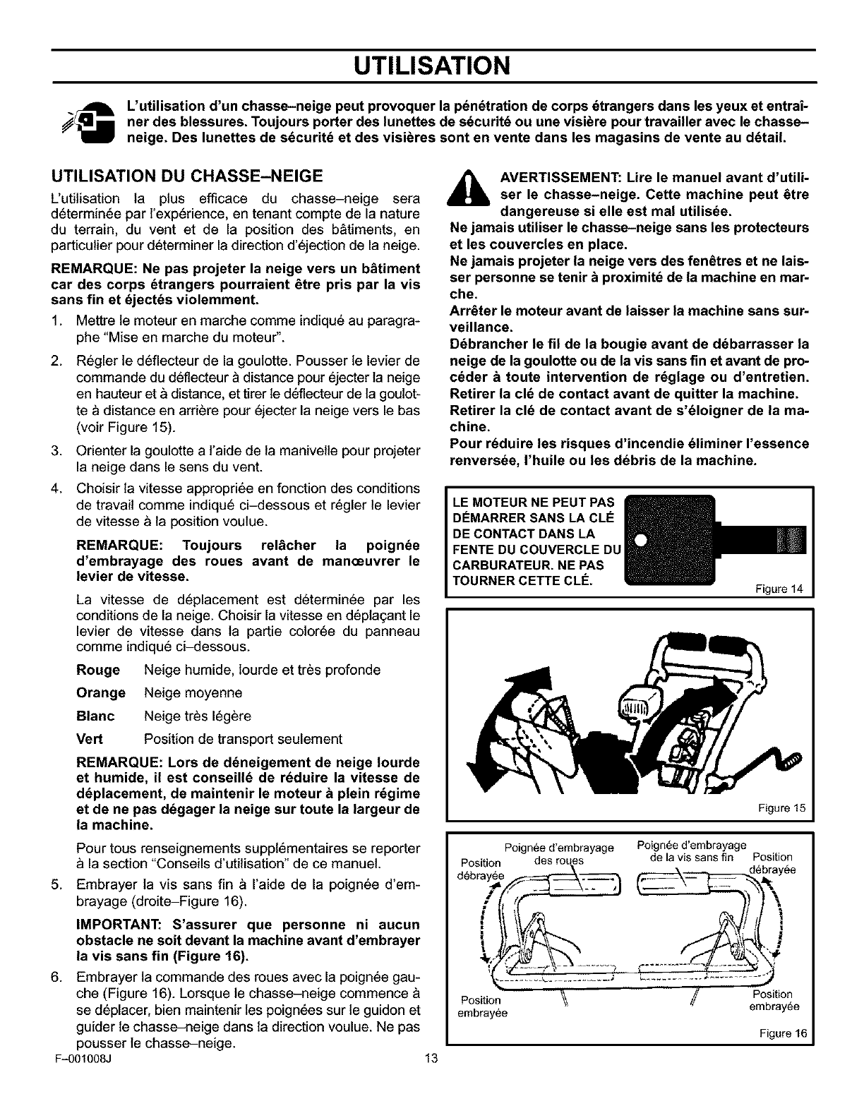 du chapitre Utilisation du chasse-neige de ce manuel.
