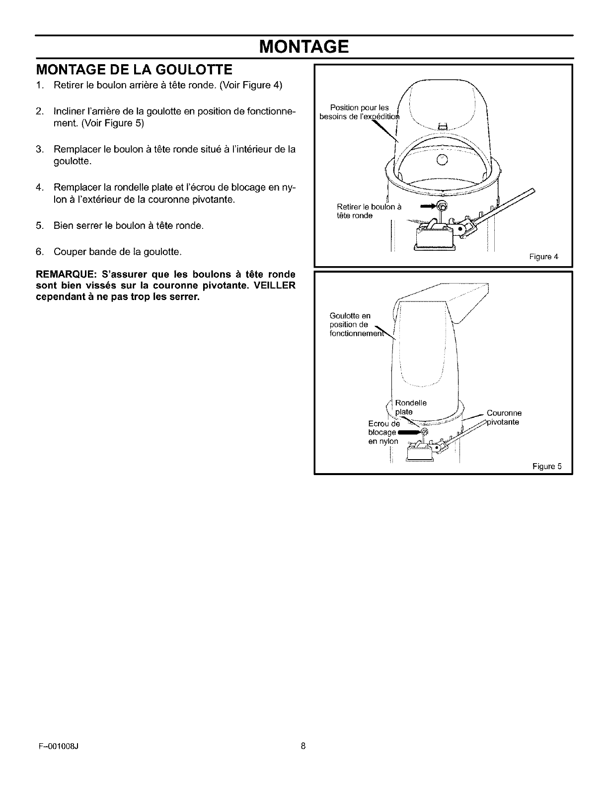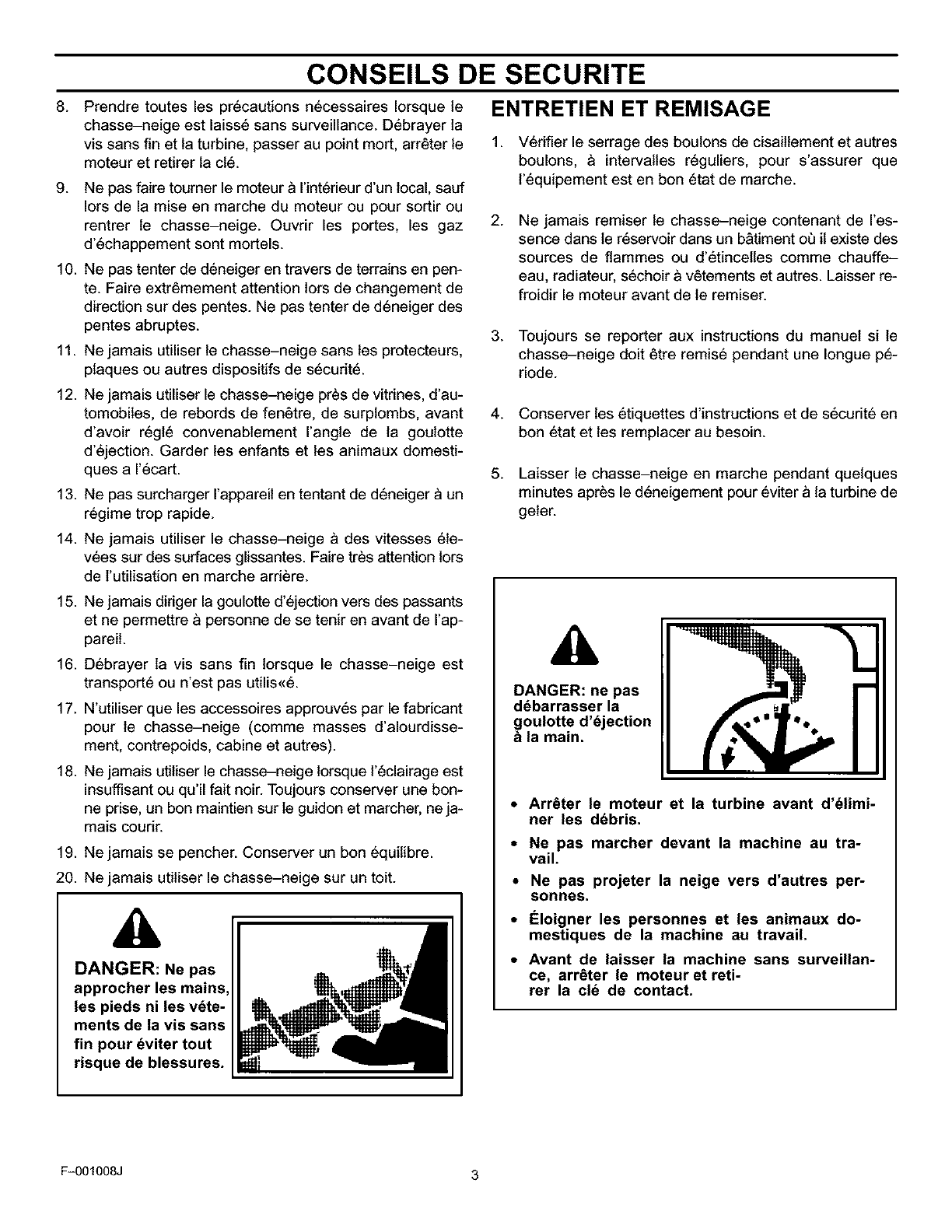 Goulotte d'6jection obstru6e. Arr6ter le meteur imm6diatement et d6brancher le fil de