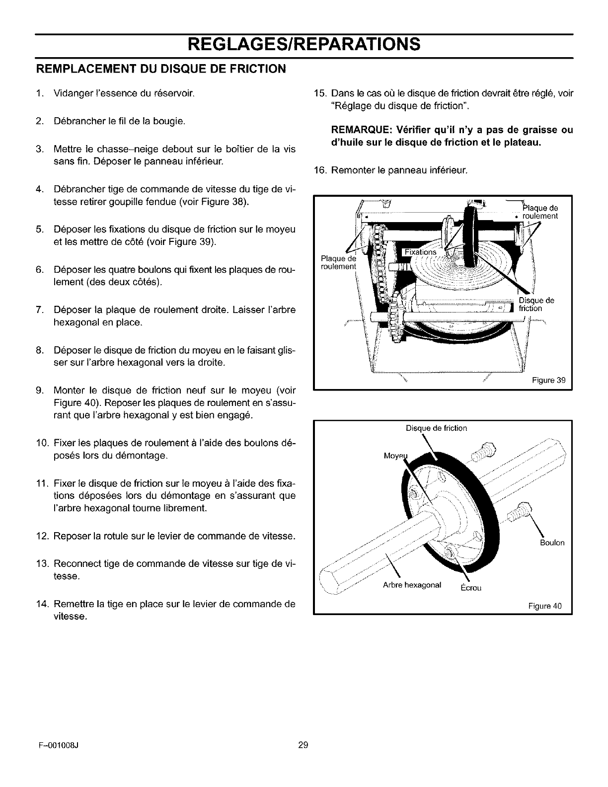 Disque de friction us6 ou endommag6. Remplacer le disque de friction. Se reporter _ la