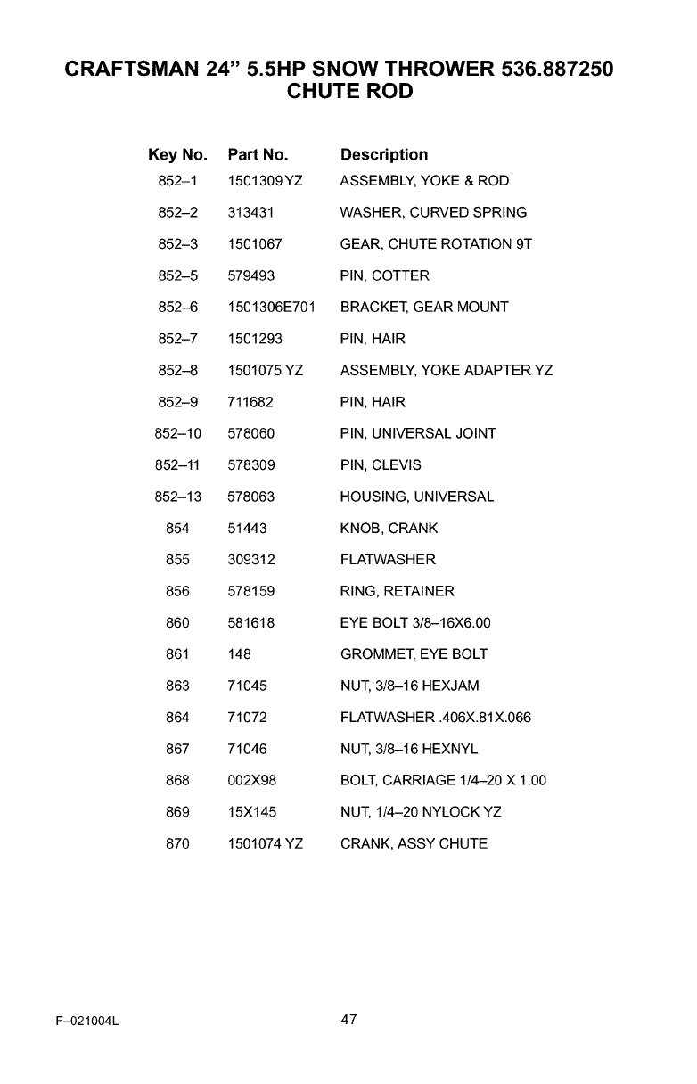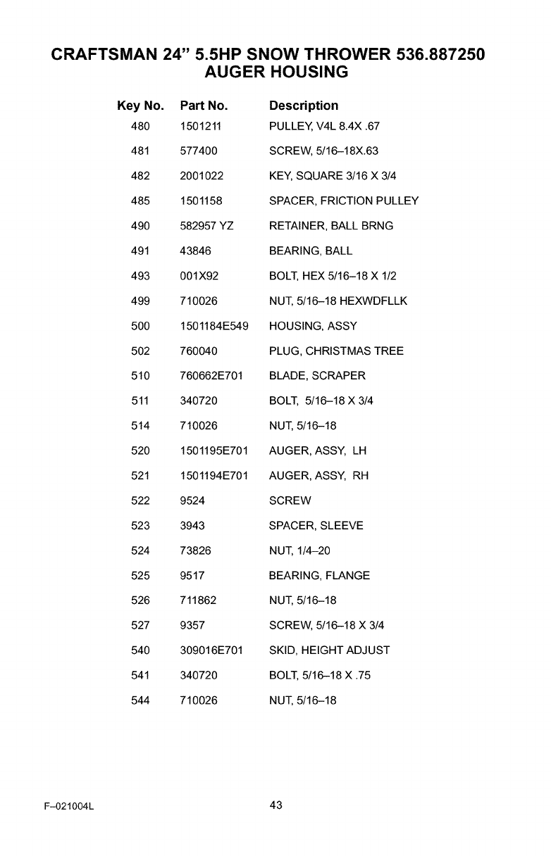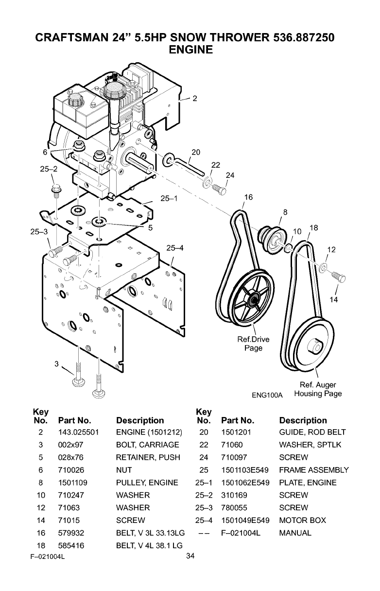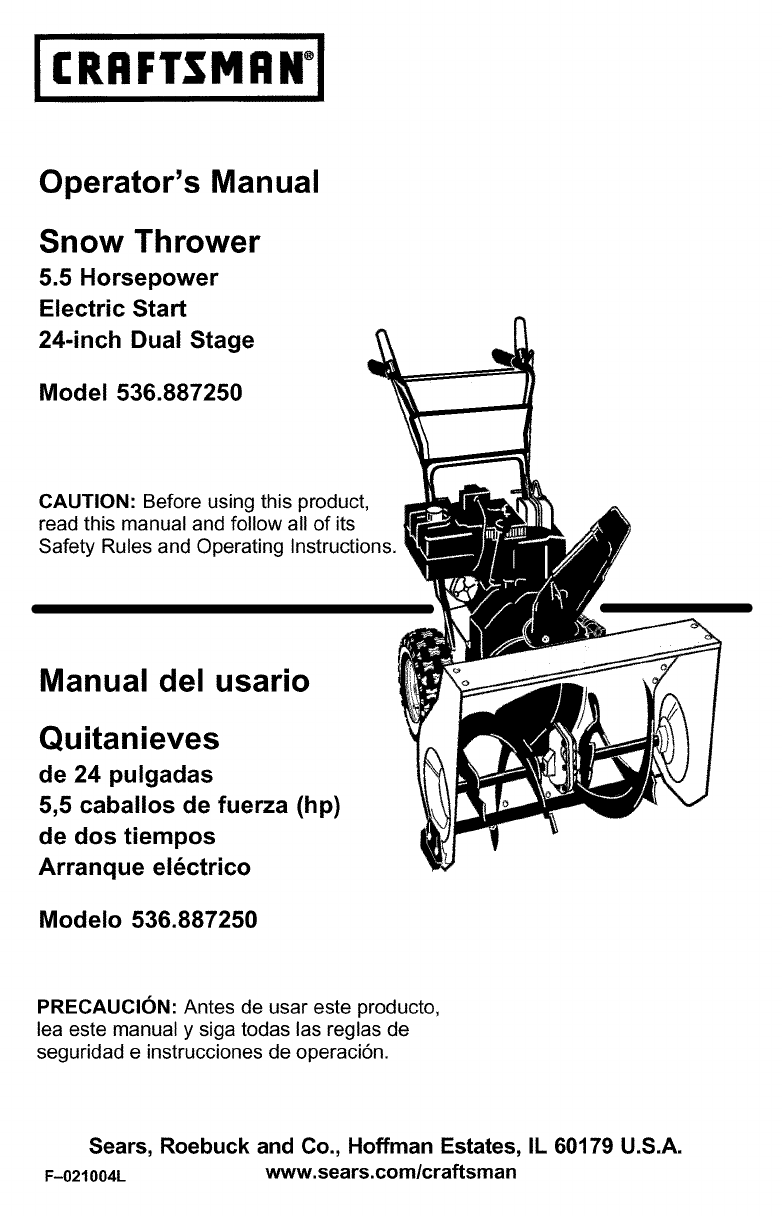 User Manual: Craftsman 536887250 536887250 CRAFTSMAN SNOW THROWER - Manuals and Guides View the owners manual for your CRAFTSMAN SNOW THROWER #536887250. Home:Lawn & Garden Parts:Craftsman Parts:Craftsman SNOW THROWER Manual
