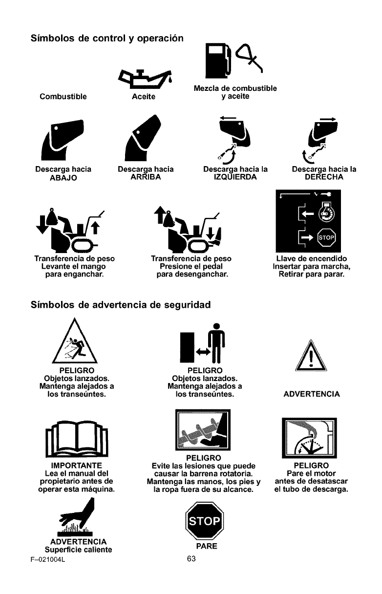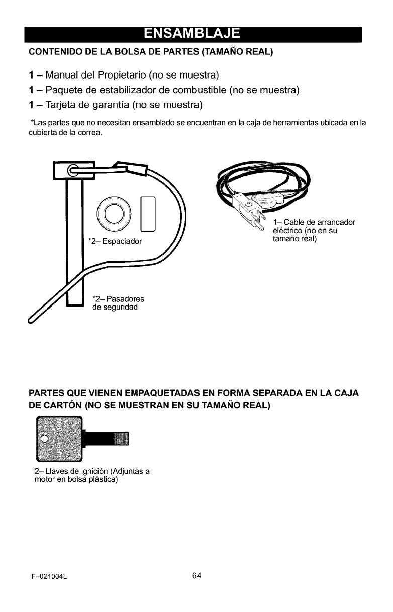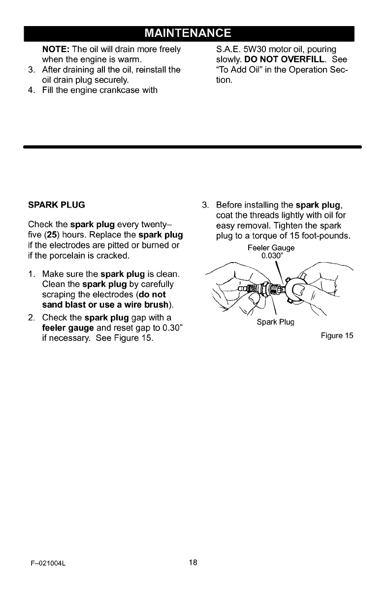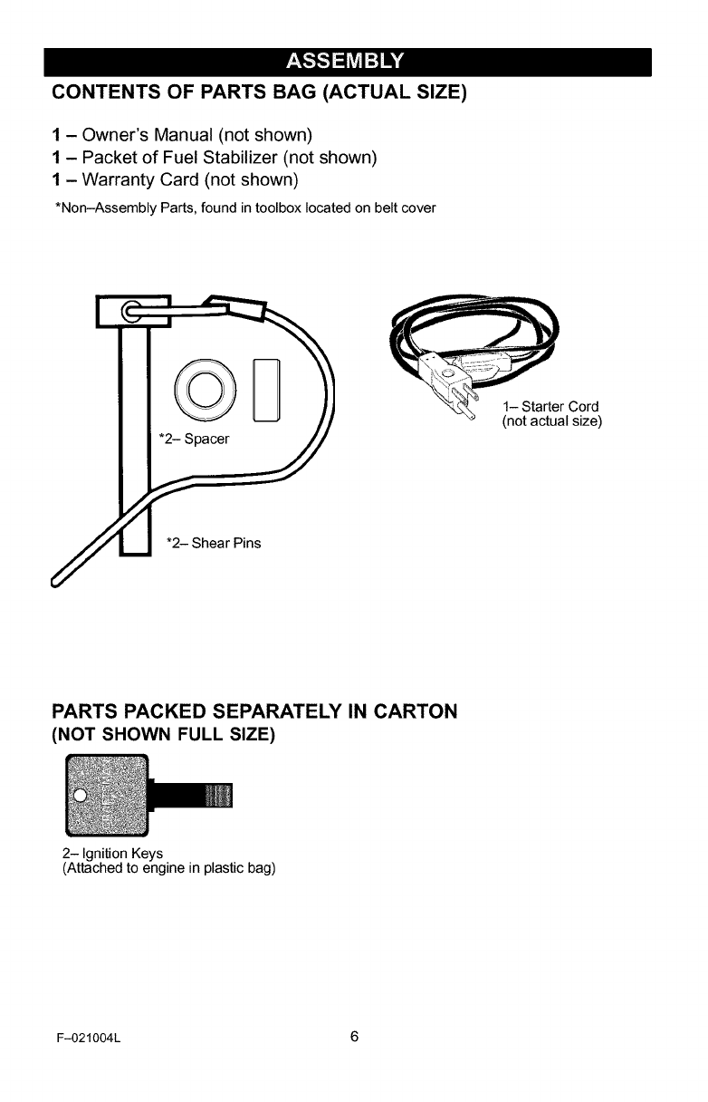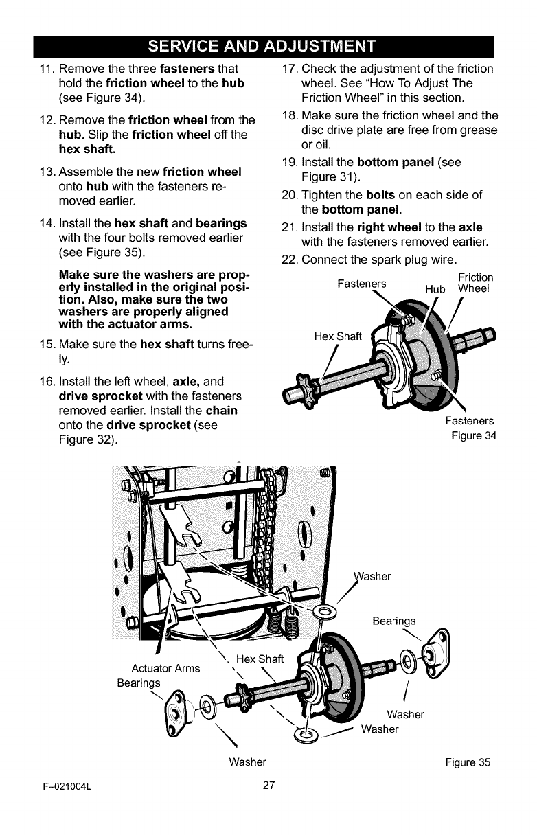 • Items which become worn during normal use, such as spark plugs, drive belts and shear