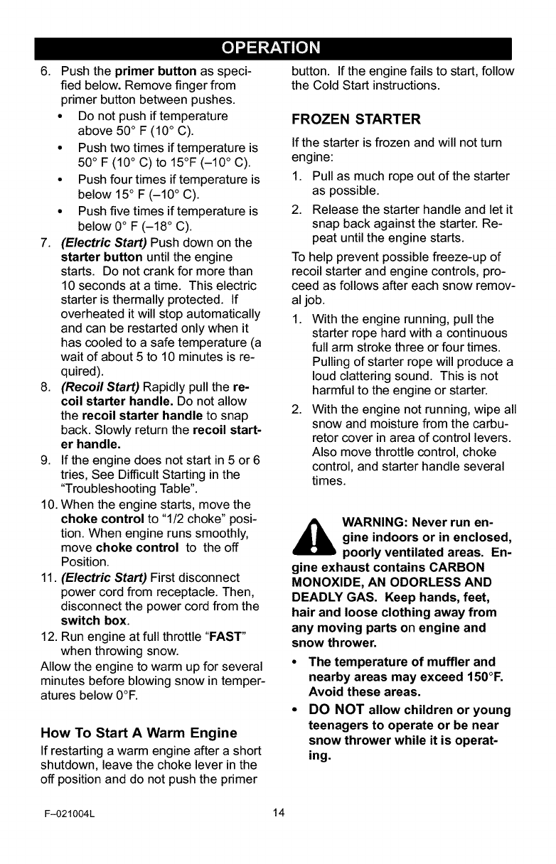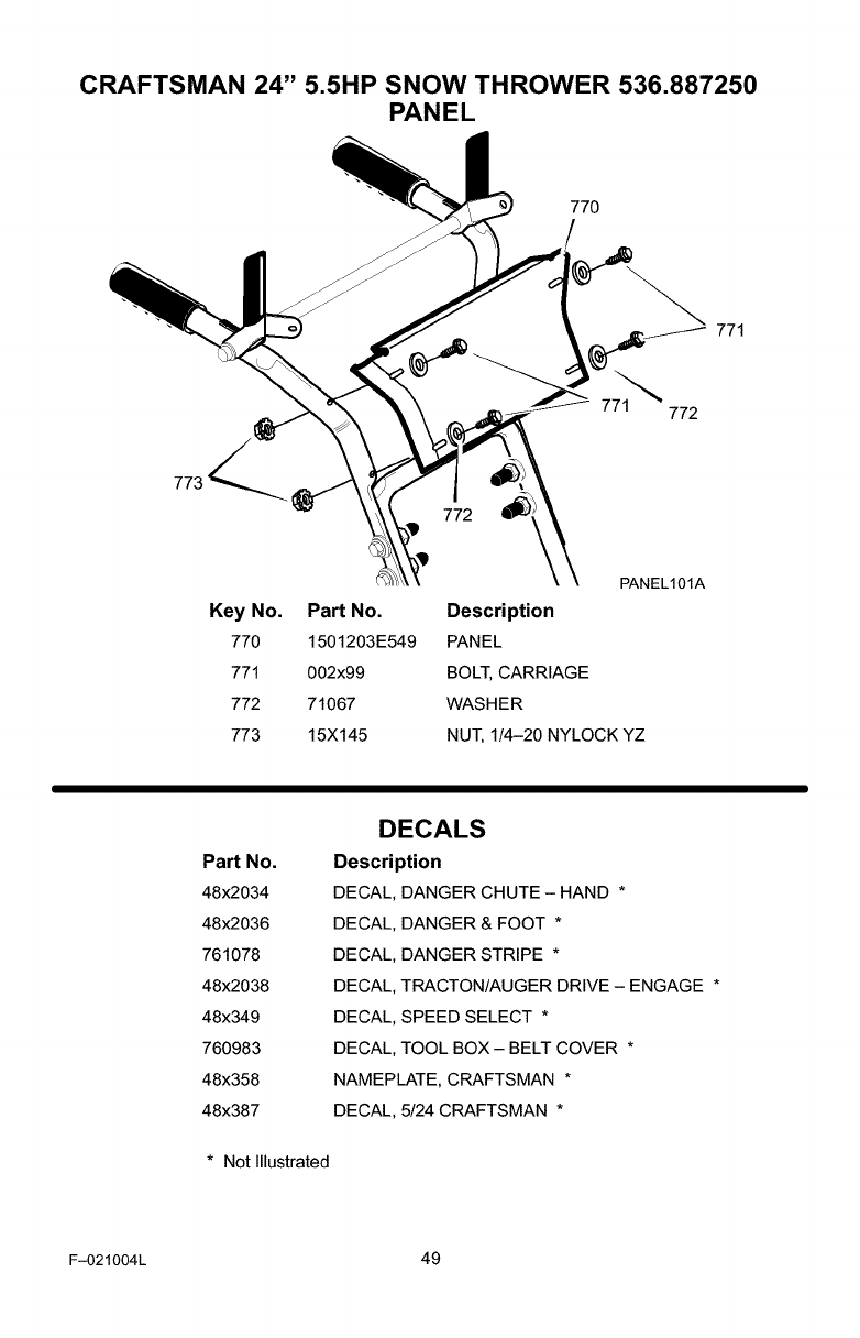 Craftsman 536887250 User Manual SNOW THROWER Manuals And Guides L0208142