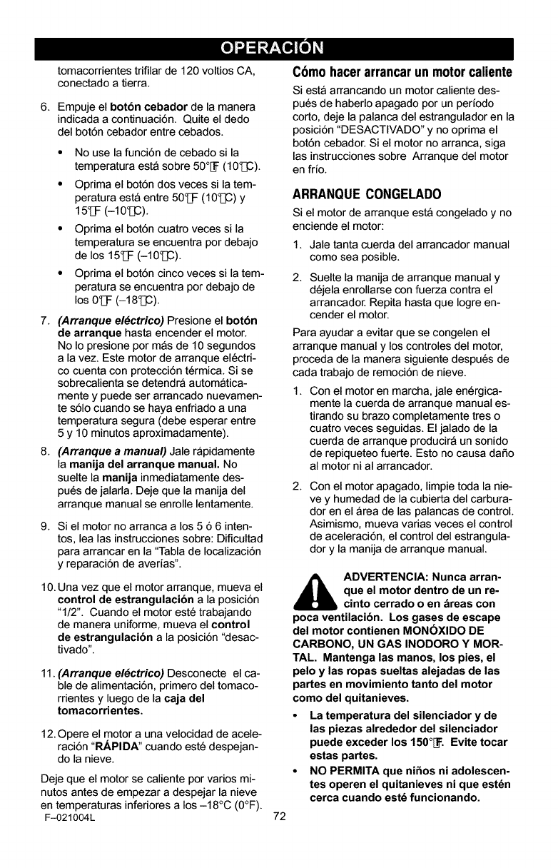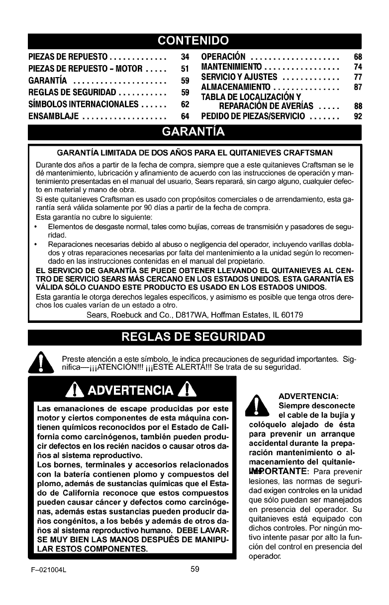 If this Craftsman Snow thrower is used for commercial or rental purposes, this warranty ap-