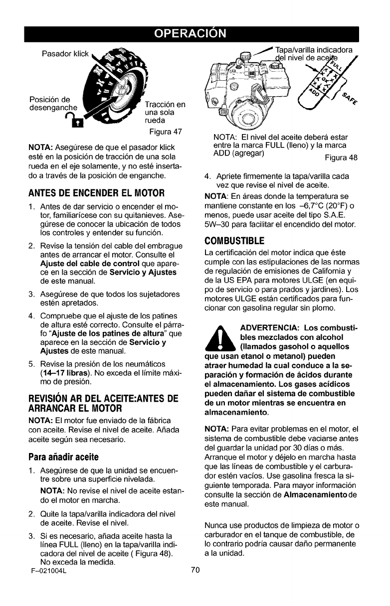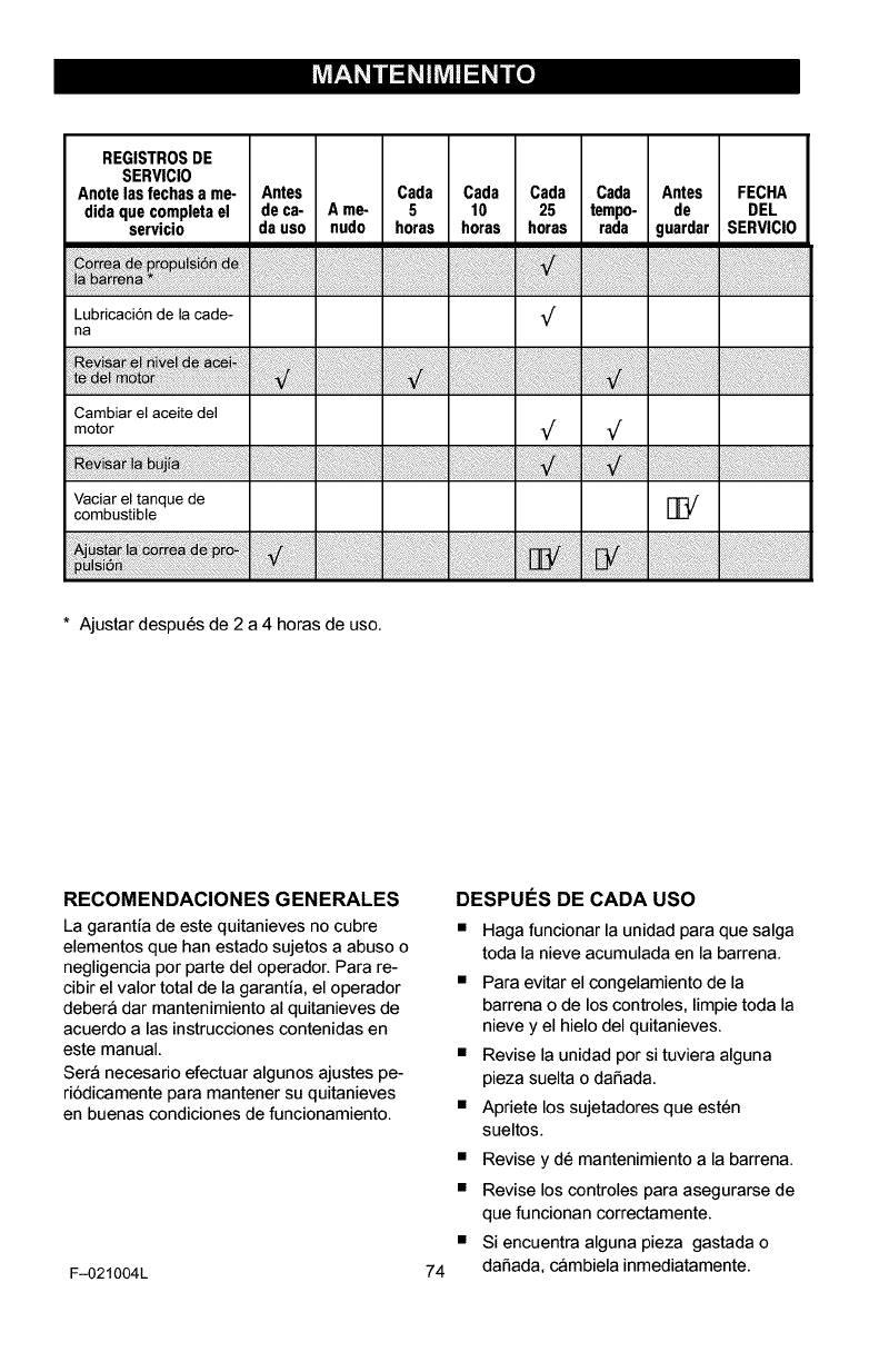 lubricated, and tuned up according to the operating and maintenance instructions in the