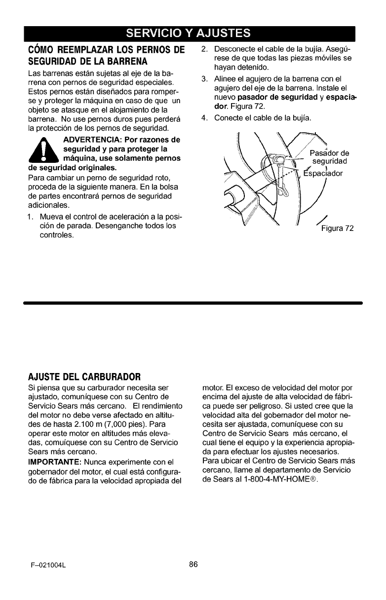 THROWER TO THE NEAREST SEARS SERVICE CENTER IN THE UNITED STATES.