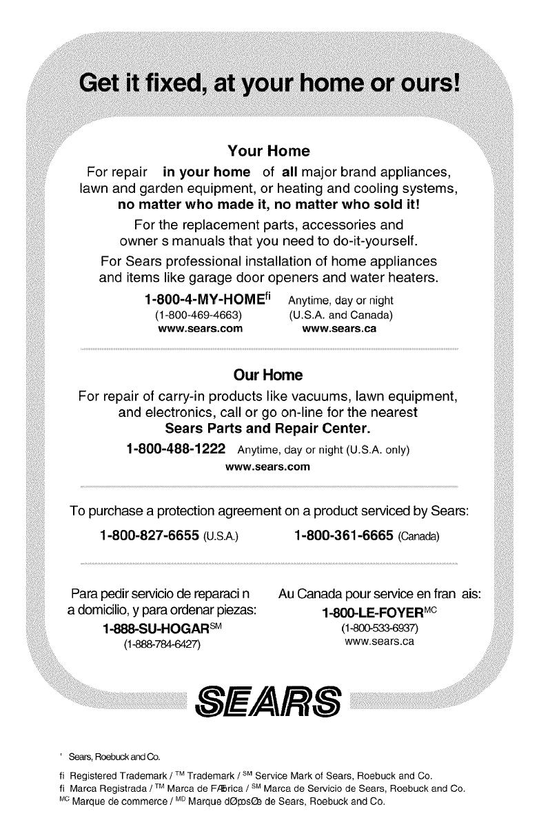 fi Registered Trademark /TMTrademark /SMService Mark of Sears, Roebuck and Co.