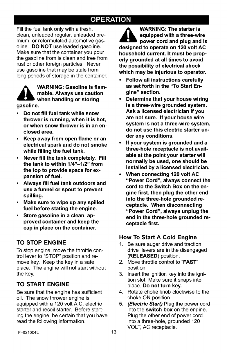 CRAFTSMAN Snowthrower, Gas Manual L0208142 CRAFTSMAN Snowthrower, Gas Owner's Manual, CRAFTSMAN Snowthrower, Gas installation guides