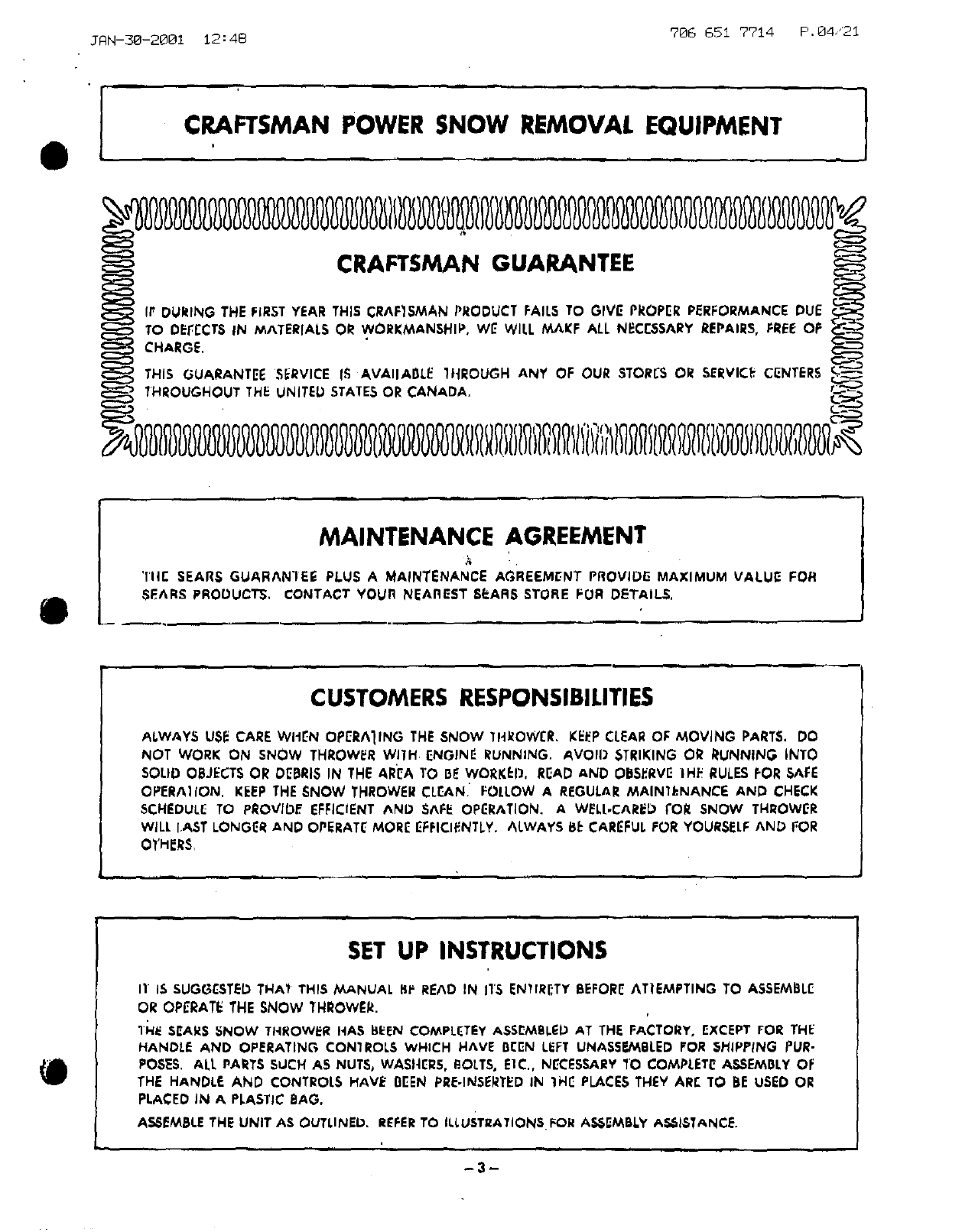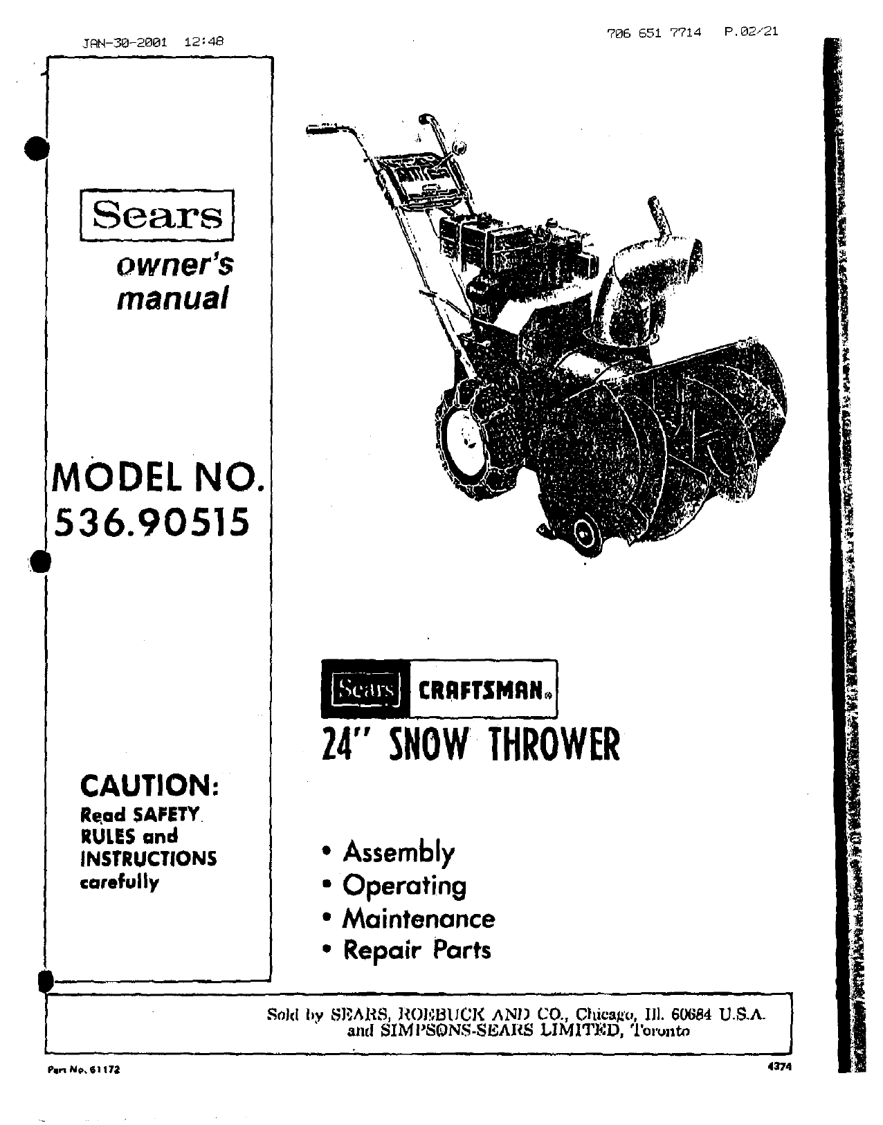 Craftsman 53690515 User Manual 24 SNOW THROWER Manuals And Guides L0102195
