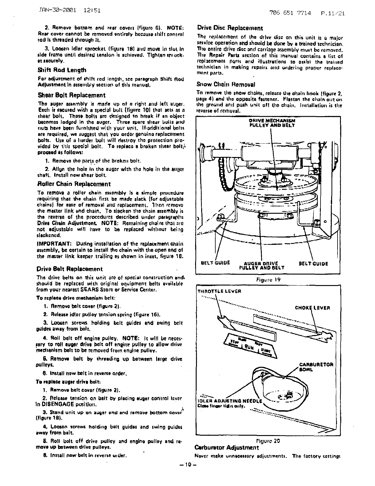 NOT WORK ON SNOW THROWER WJlH ENGINE RUNNING. AVOID STRIKING OR RUNNING INTO