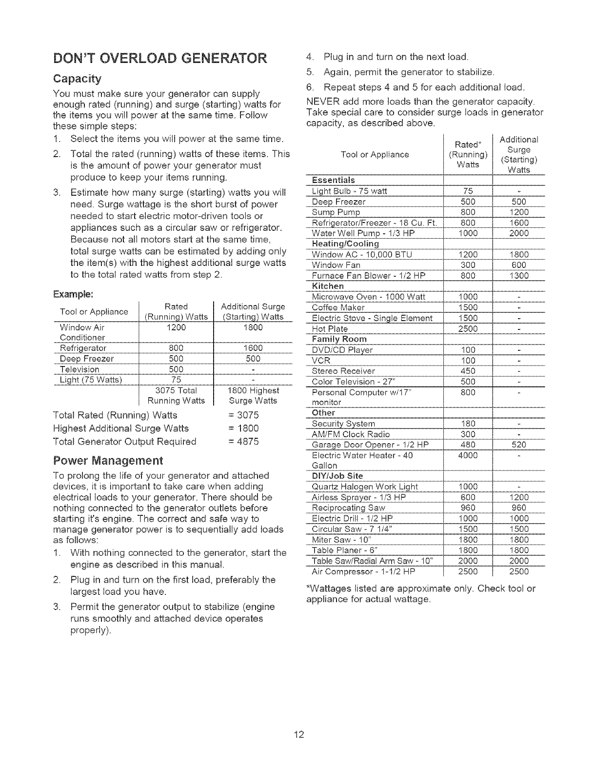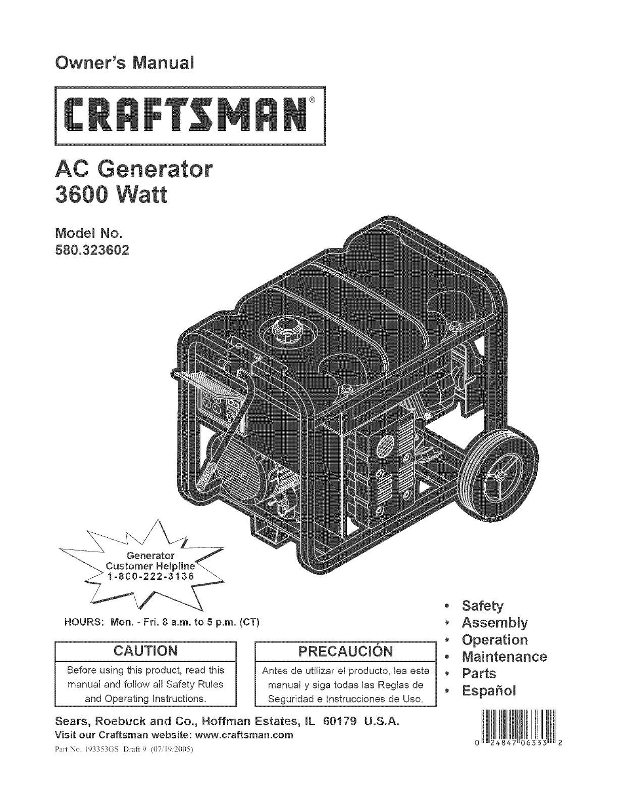 Craftsman 580323602 User Manual AC GENERATOR Manuals And Guides L0522235