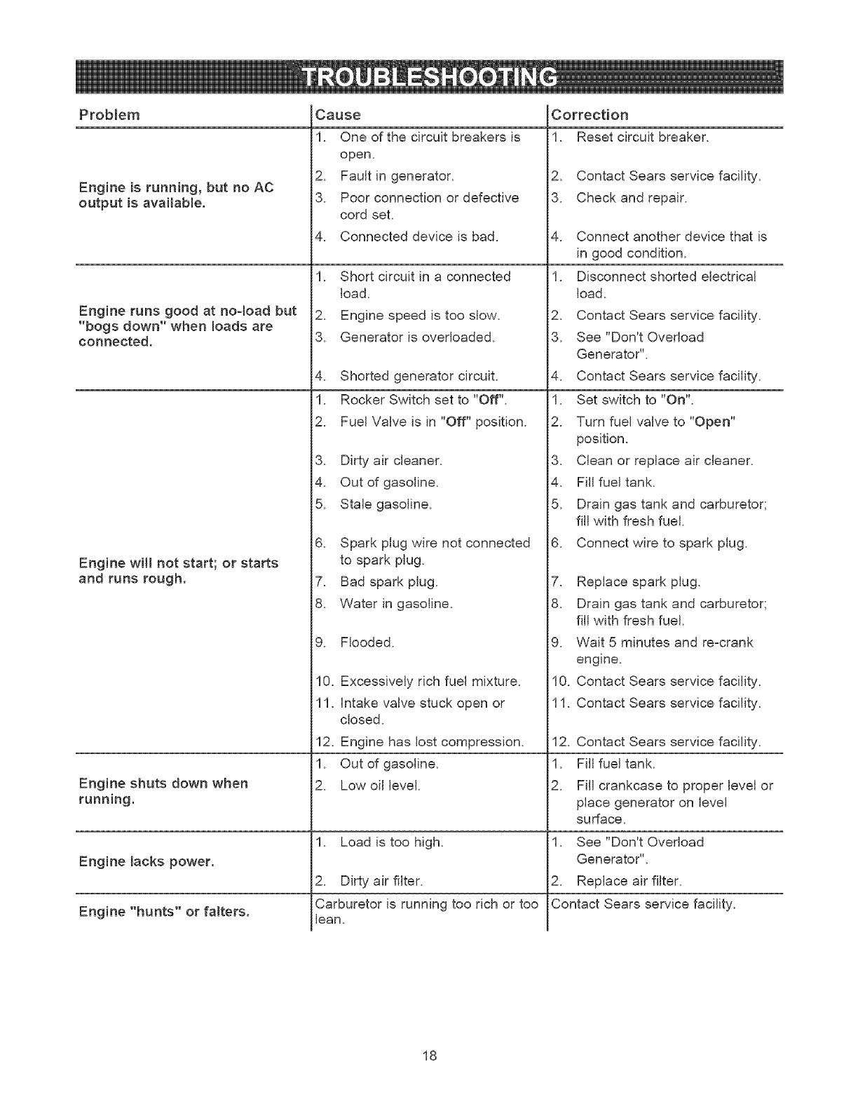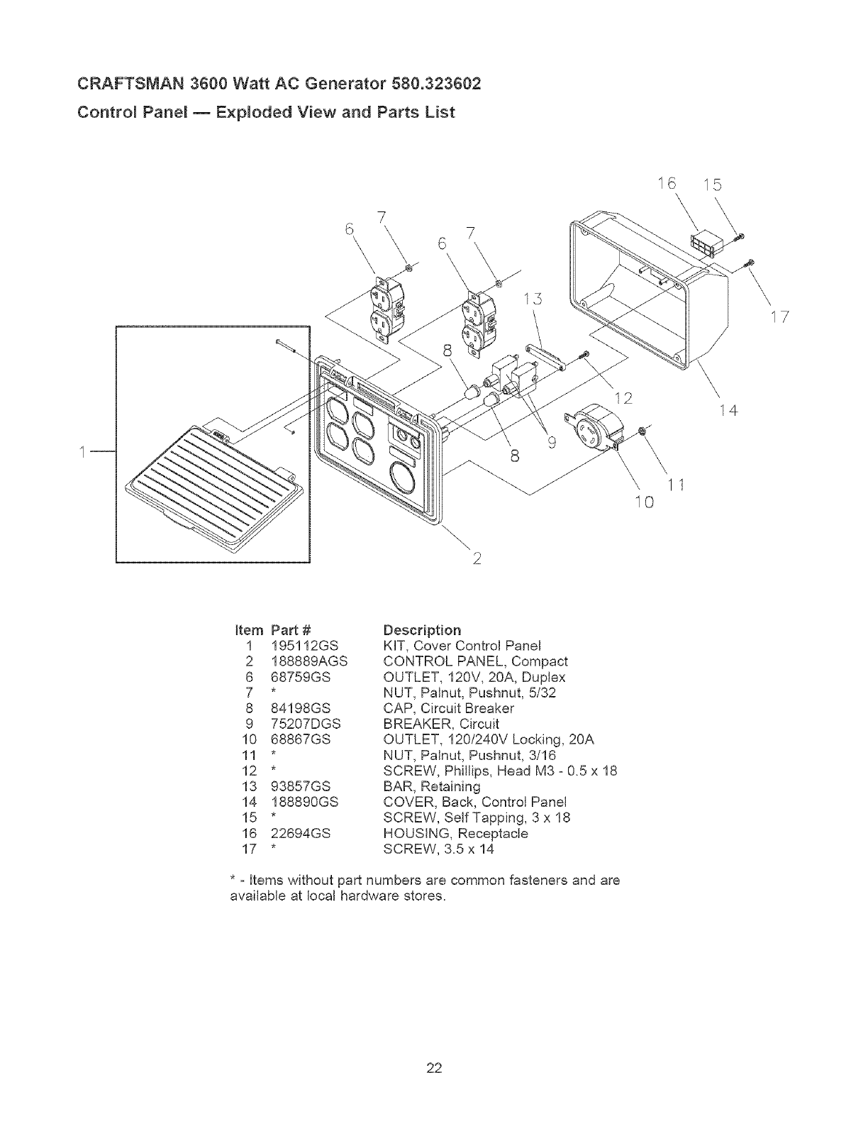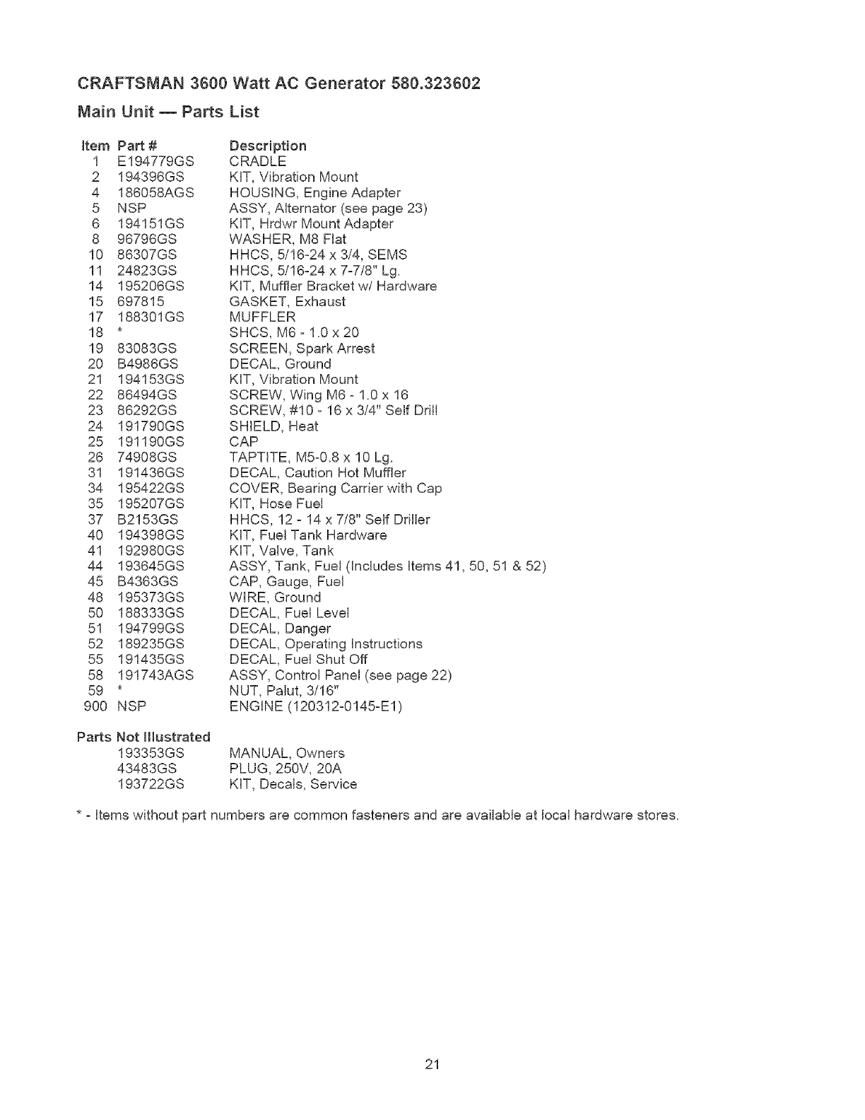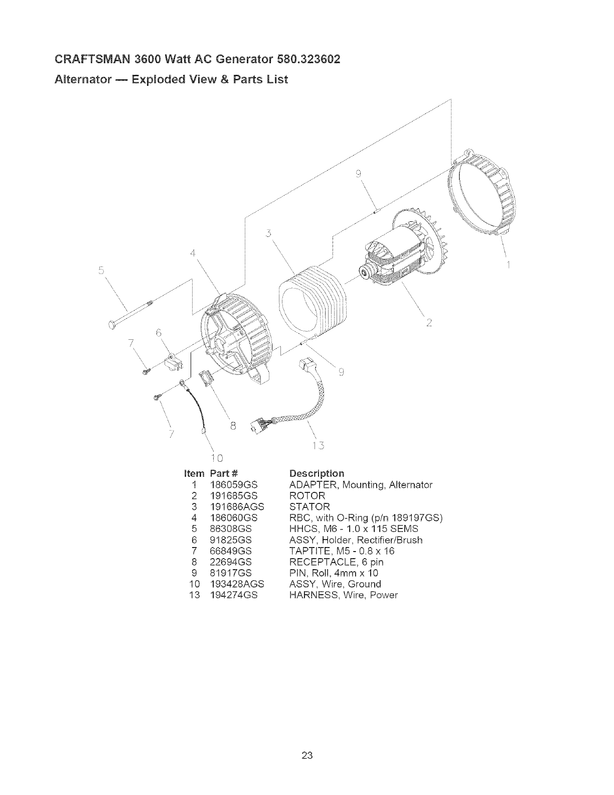 User Manual: Craftsman 580323602 580323602 CRAFTSMAN AC GENERATOR - Manuals and Guides View the owners manual for your CRAFTSMAN AC GENERATOR #580323602. Home:Tool Parts:Craftsman Parts:Craftsman AC GENERATOR Manual