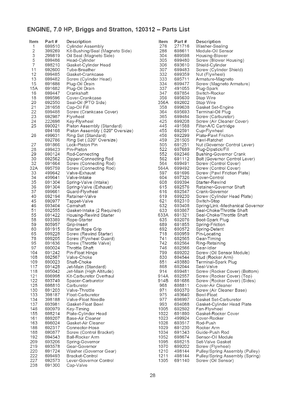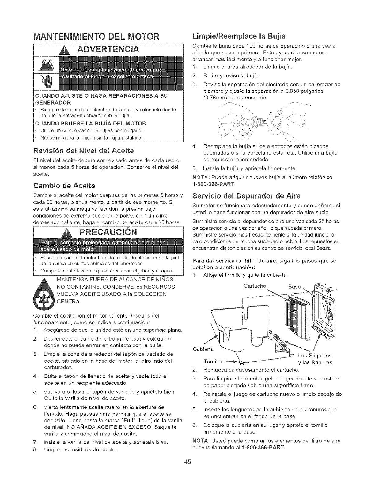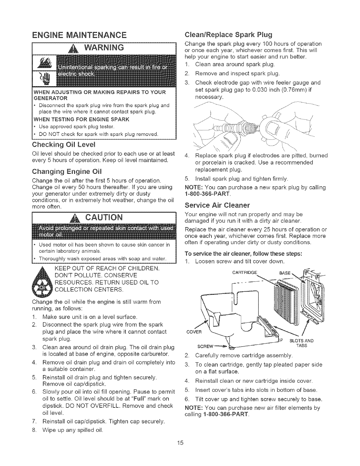 ** NORMAL WEAR: As with all mechanical devices, engines need periodic parts service and replacement to