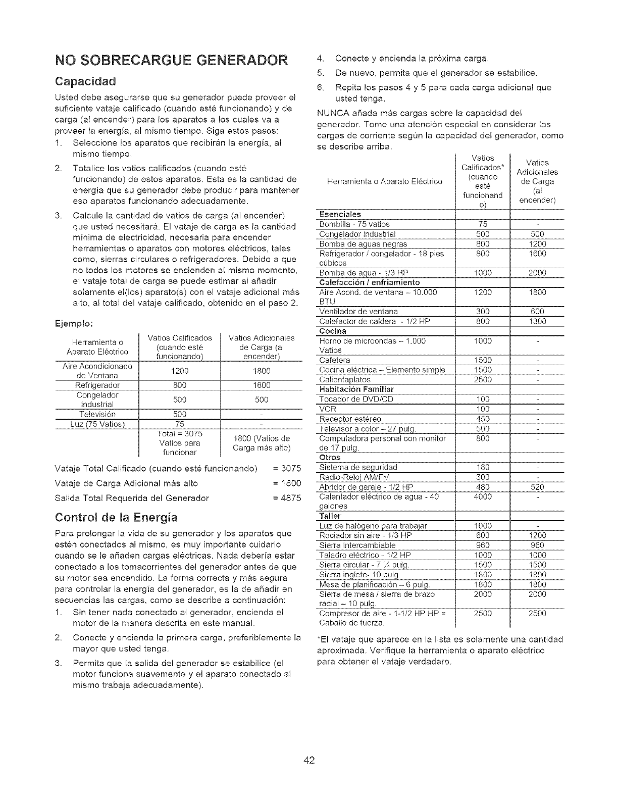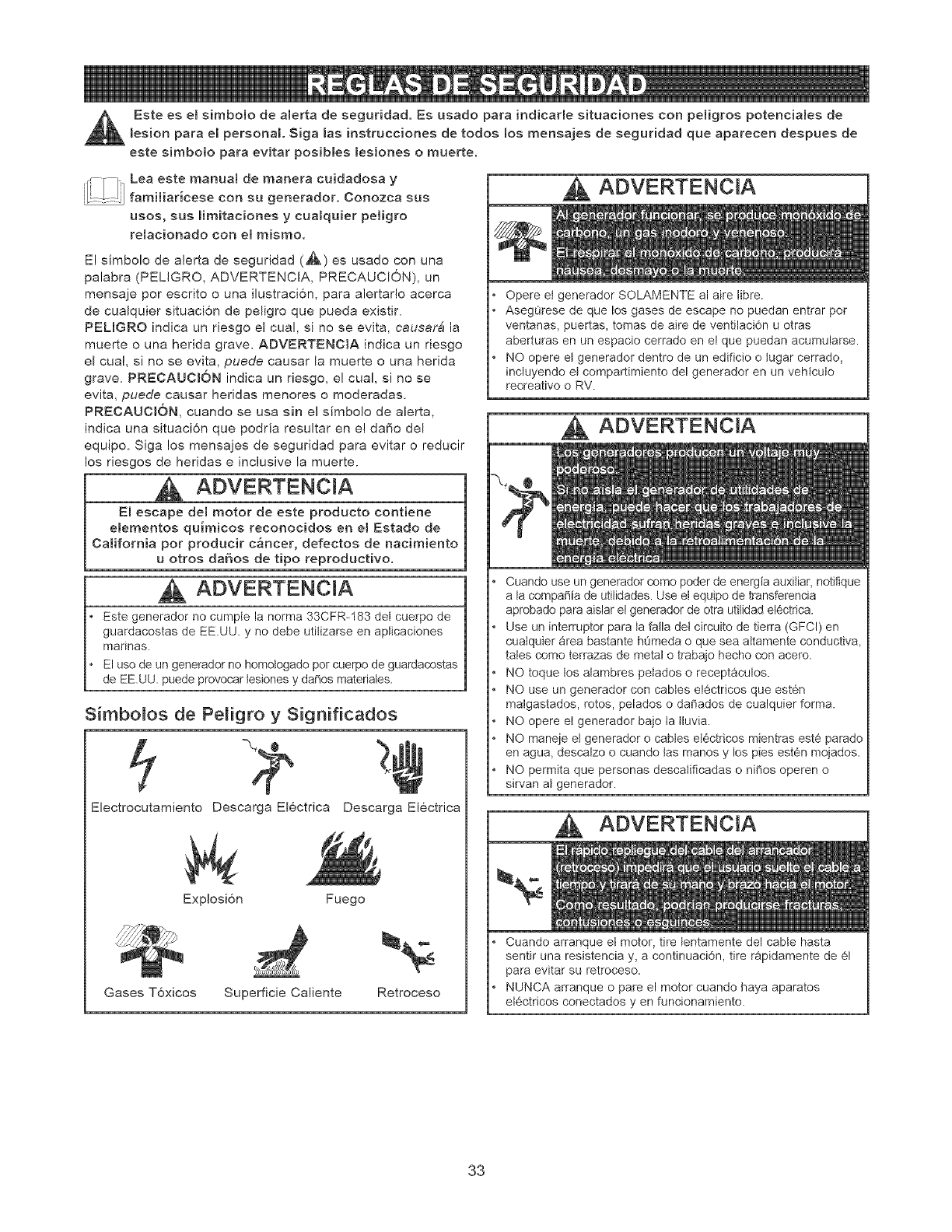 approved generator could result in bodily injury and/or