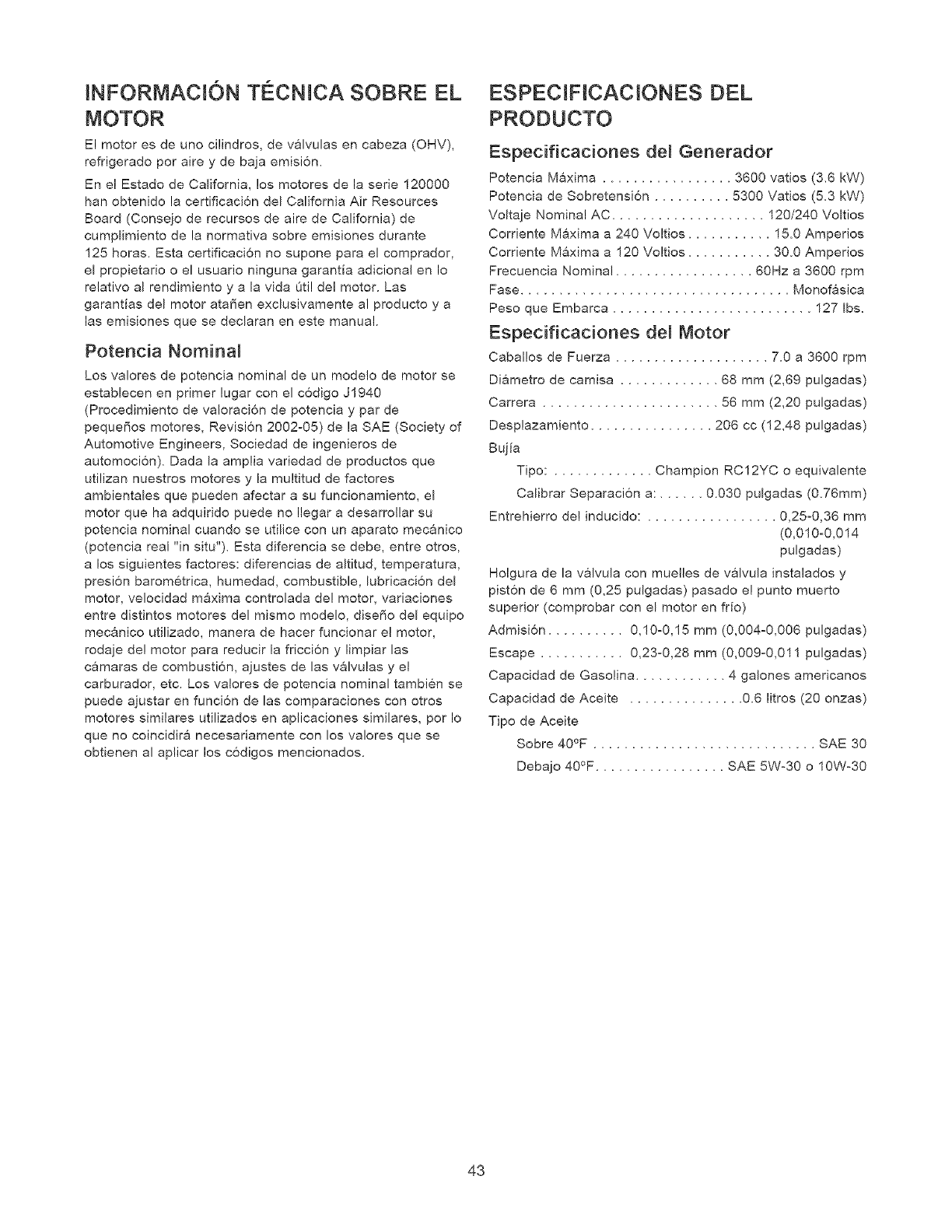 aire. El fabricante de! motor ofrece esta informaci6n al