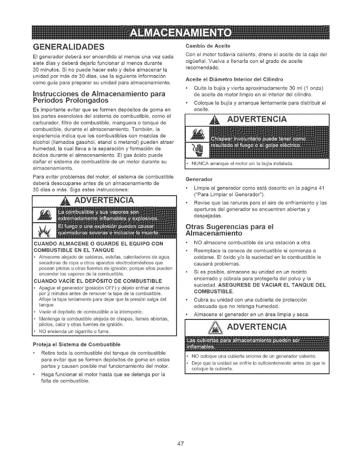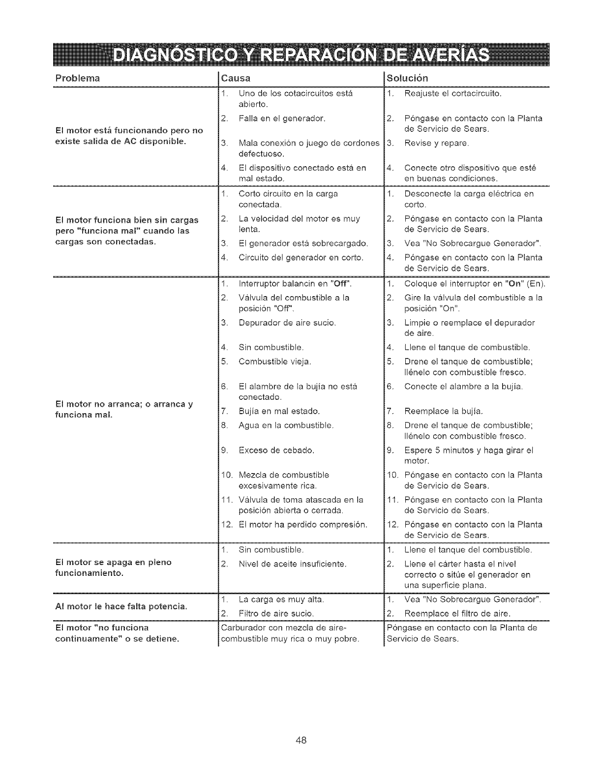 mantenimiento o reparaci6n. El propietario es responsable de