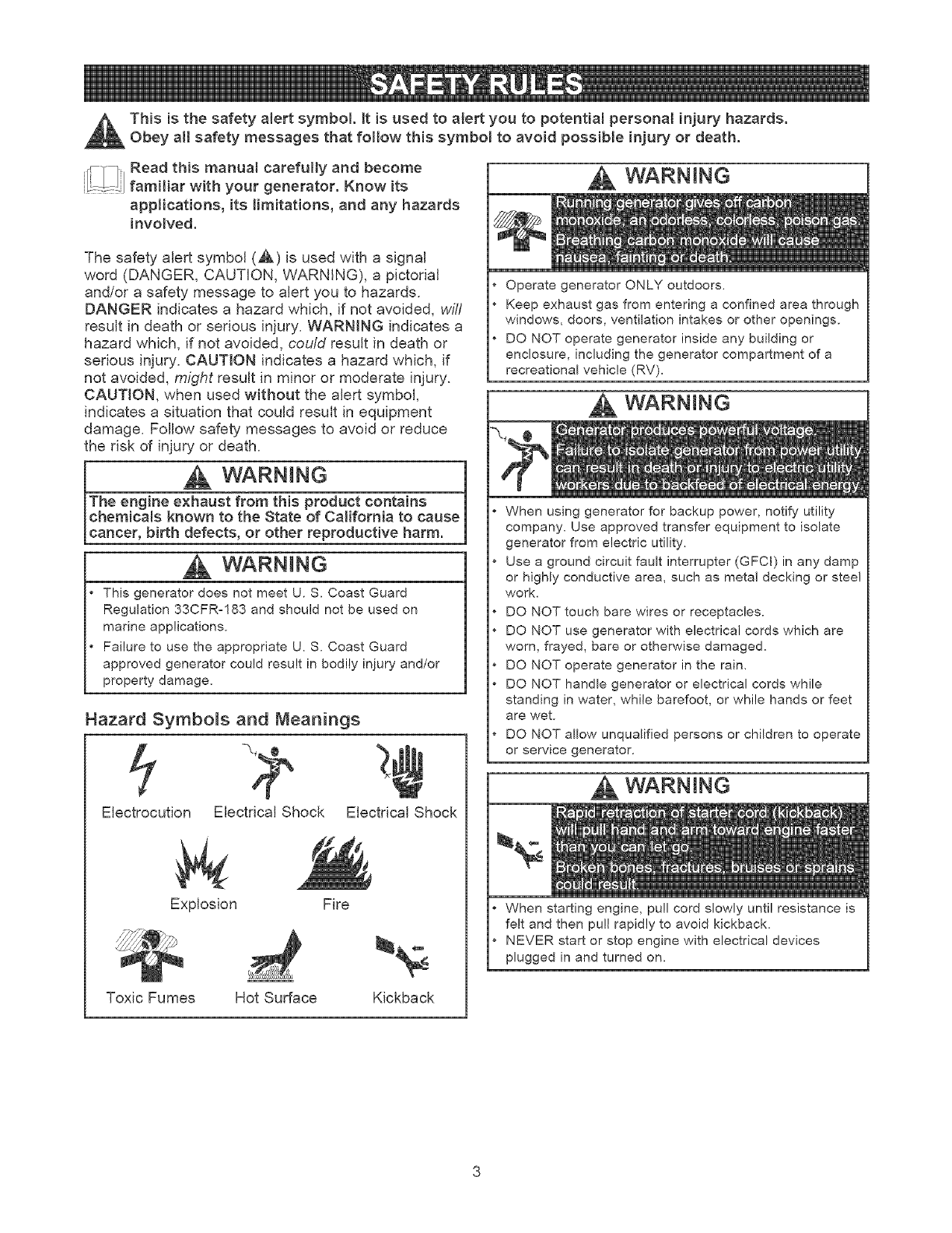 • This generator does not meet U. S. Coast Guard