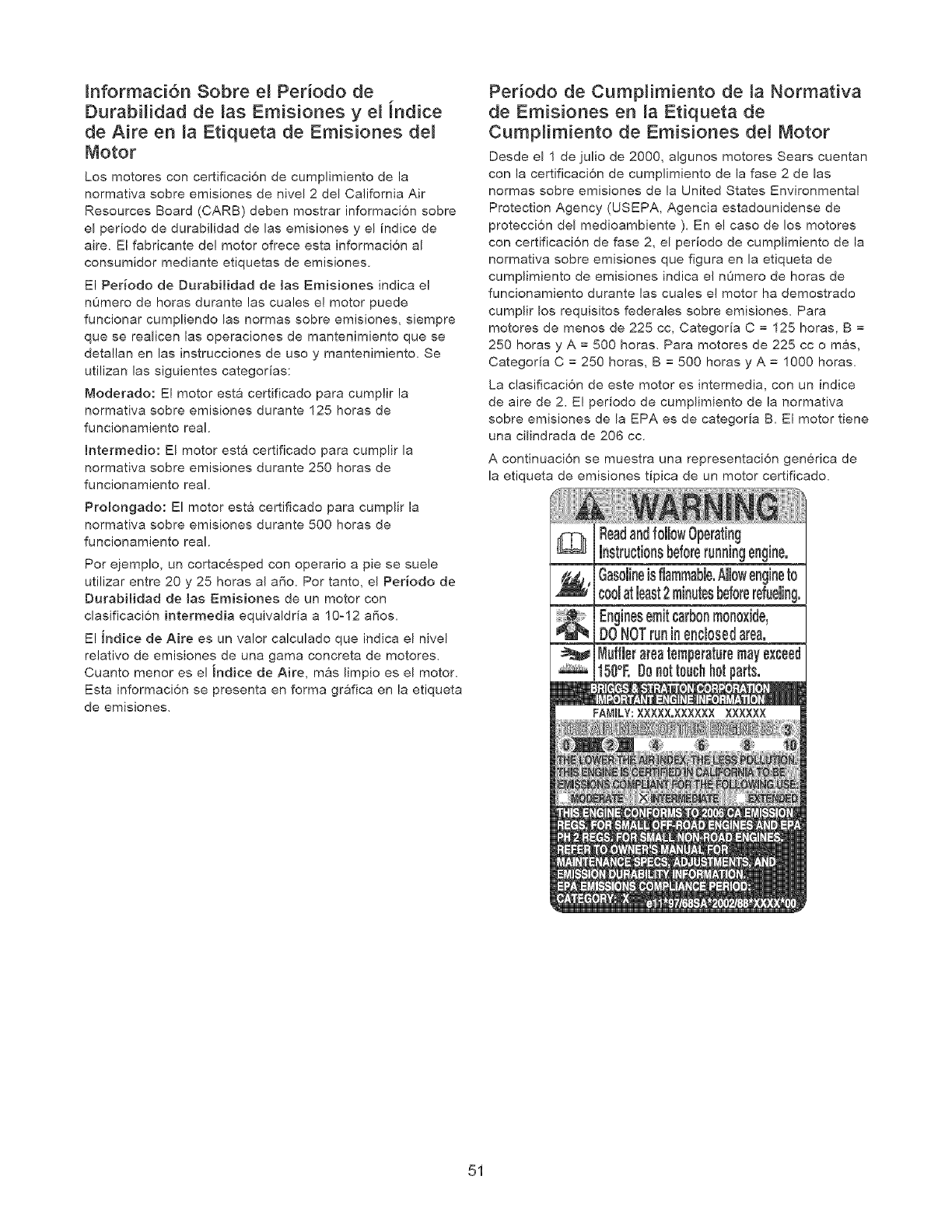 Los motores con certificaci6n de cumplimiento de la