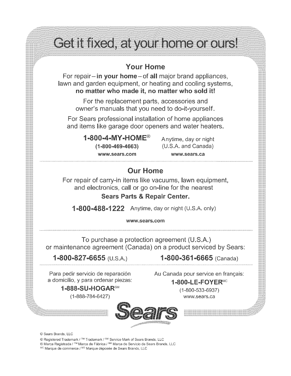 (1-888W84-6427) www.sears.ca