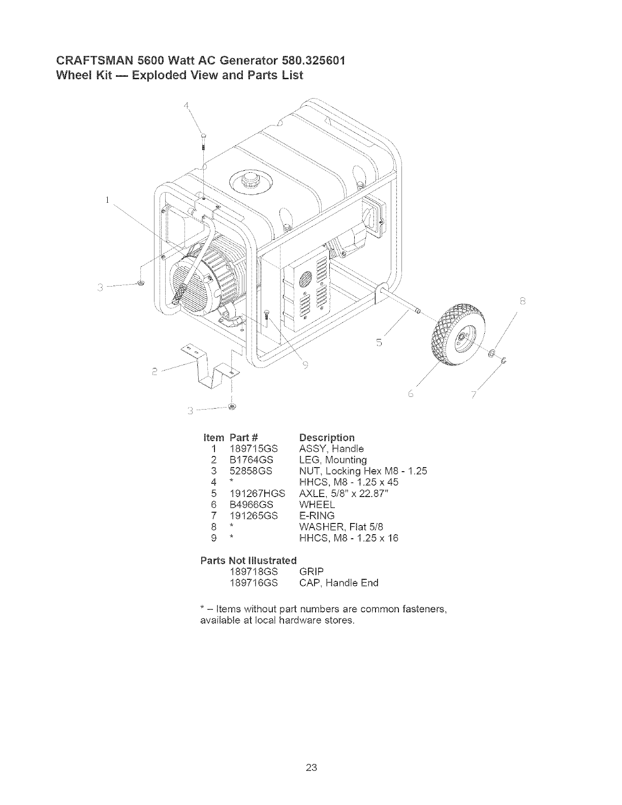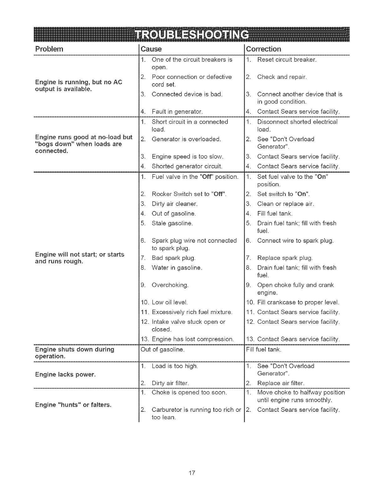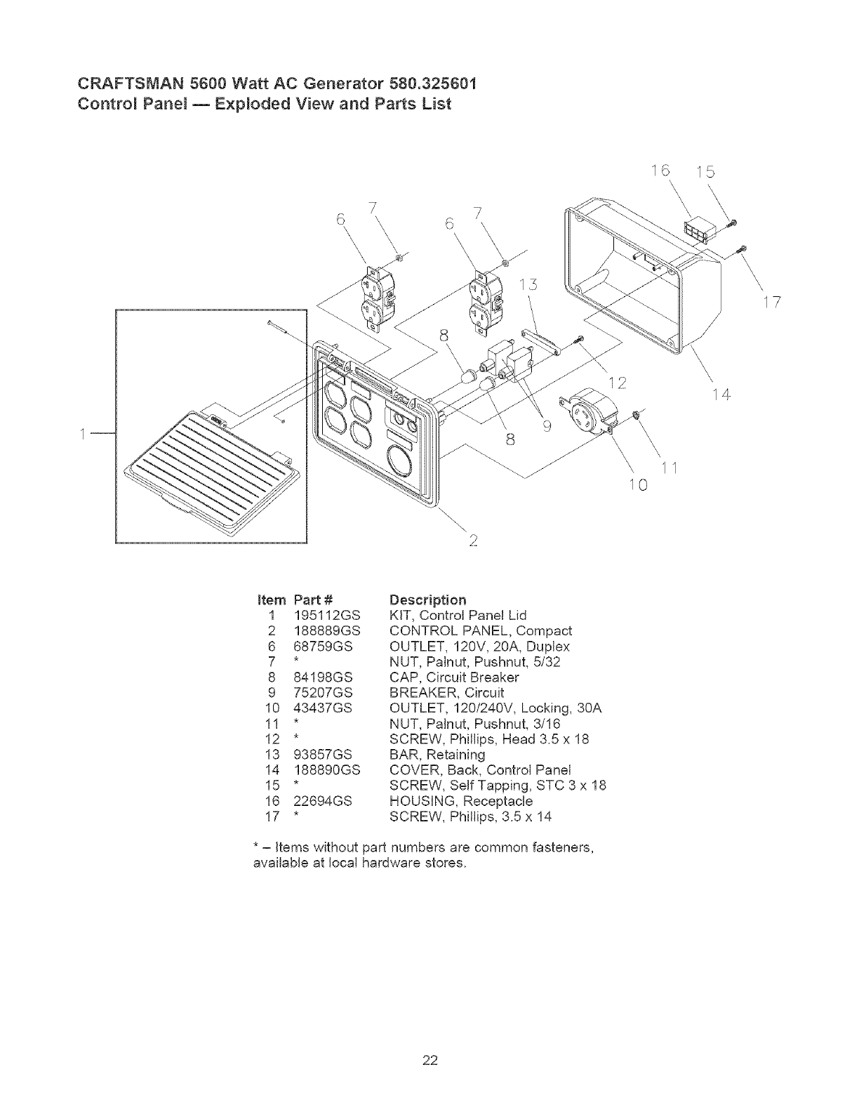 User Manual: Craftsman 580325601 580325601 CRAFTSMAN AC GENERATOR - Manuals and Guides View the owners manual for your CRAFTSMAN AC GENERATOR #580325601. Home:Tool Parts:Craftsman Parts:Craftsman AC GENERATOR Manual