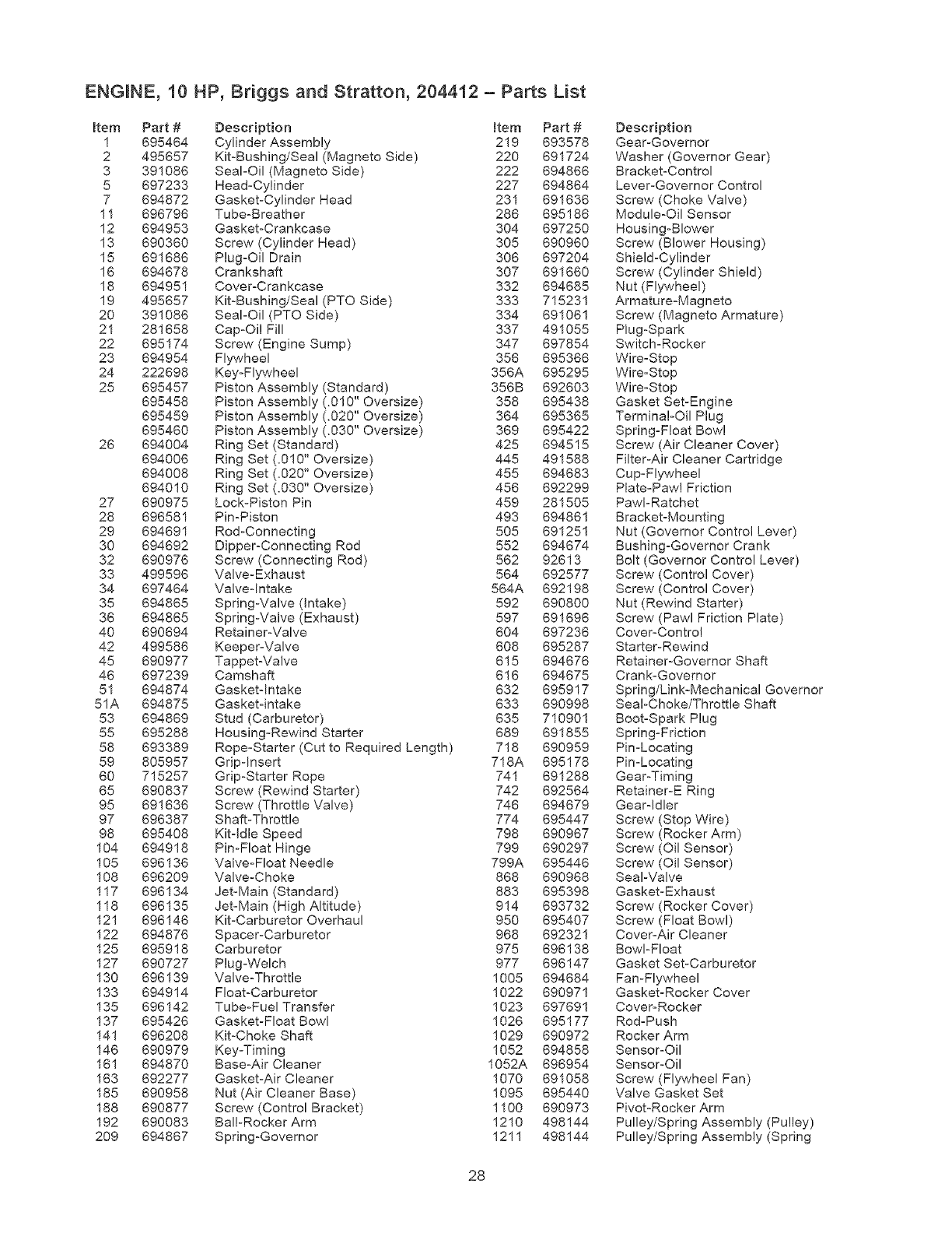** NORMAL WEAR: As with all mechanical devices, engines need periodic parts service and replacement to