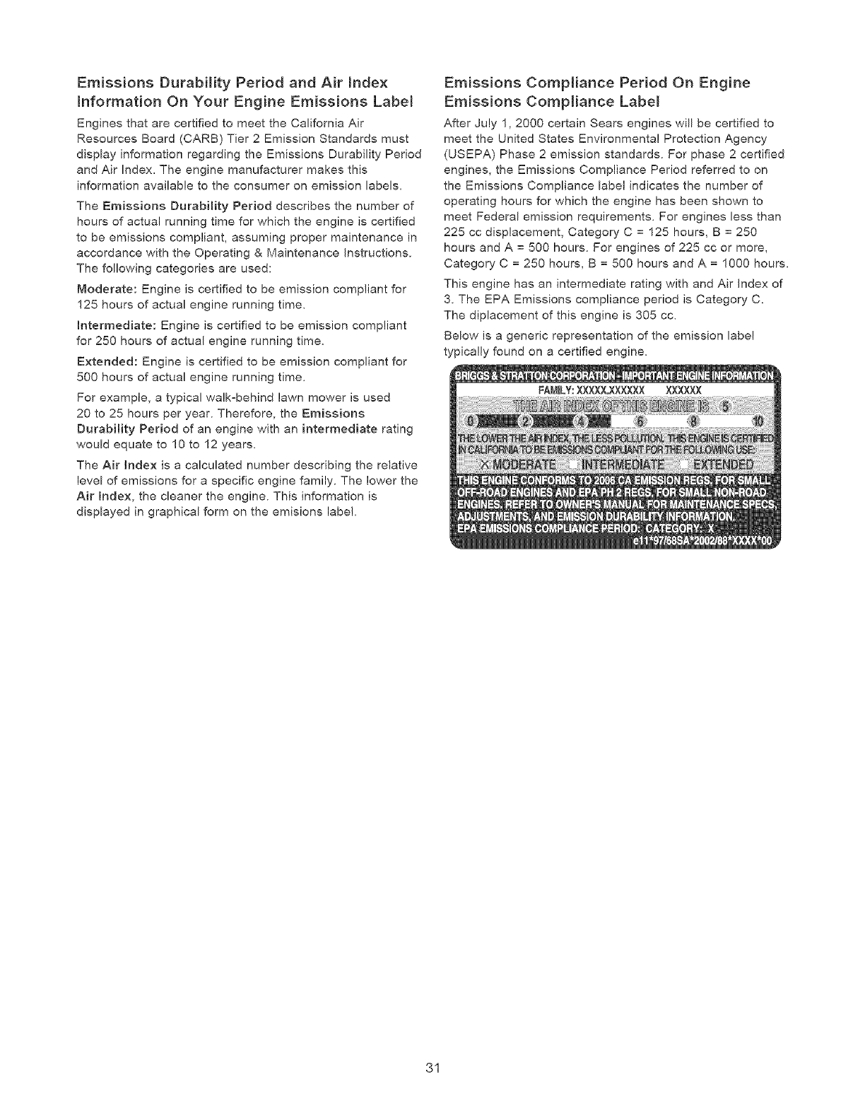 Desde el 1 de julio de 2000, algunos motores Sears cuentan