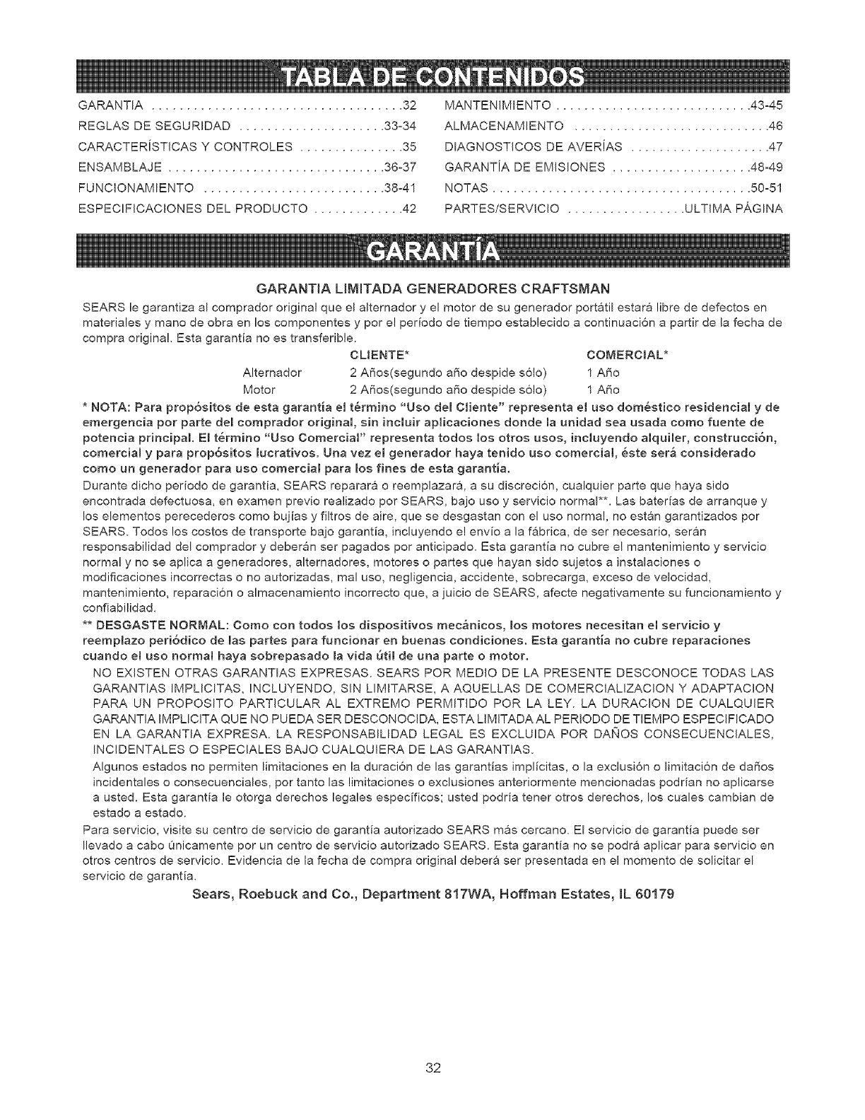 purchase. This warranty is not transferable and applies only to portable generators driven by the Sears