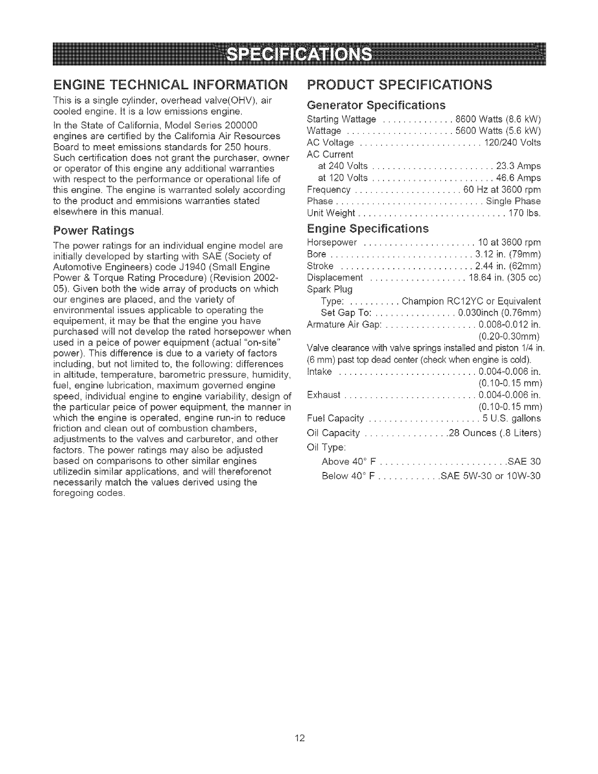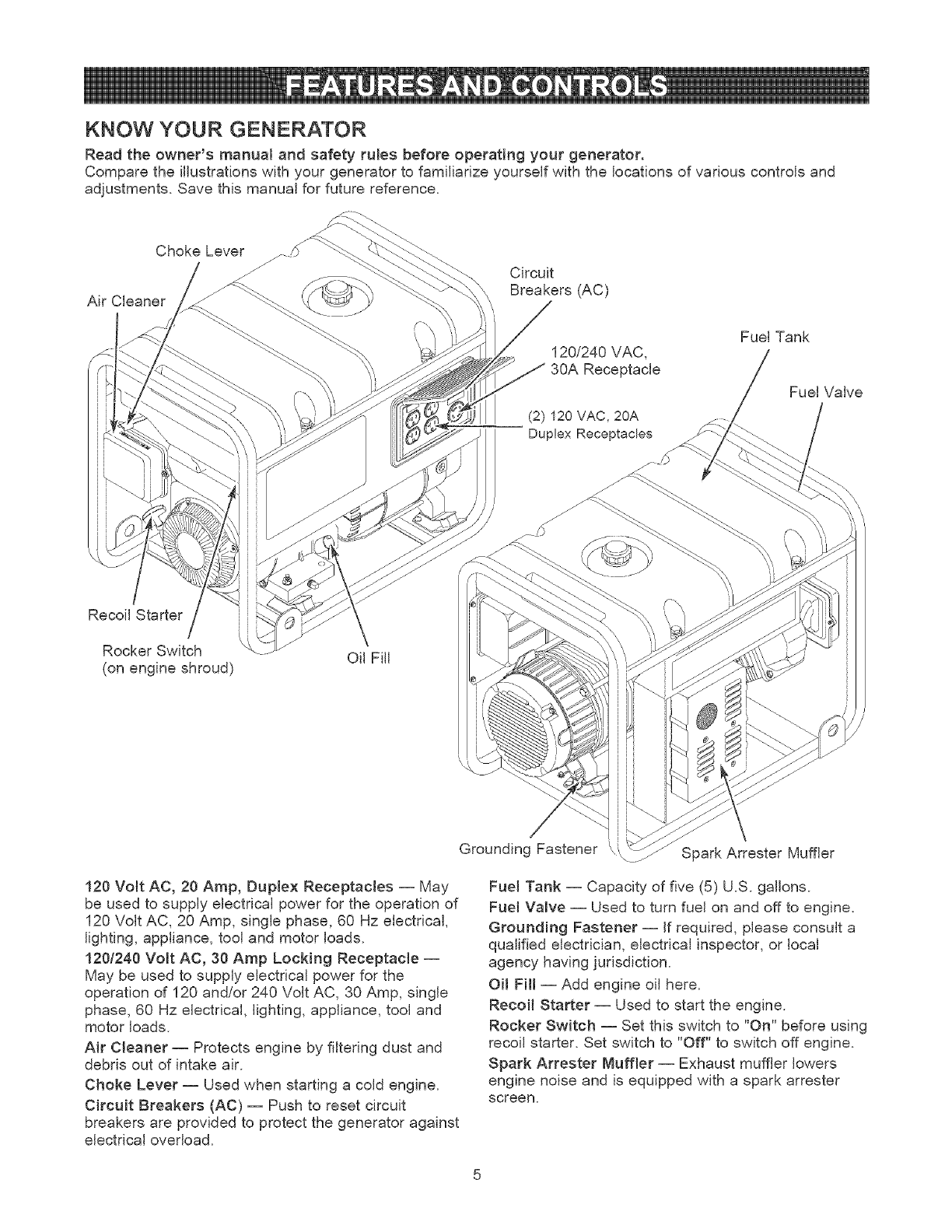 Craftsman 580325601 User Manual AC GENERATOR Manuals And Guides L0522234