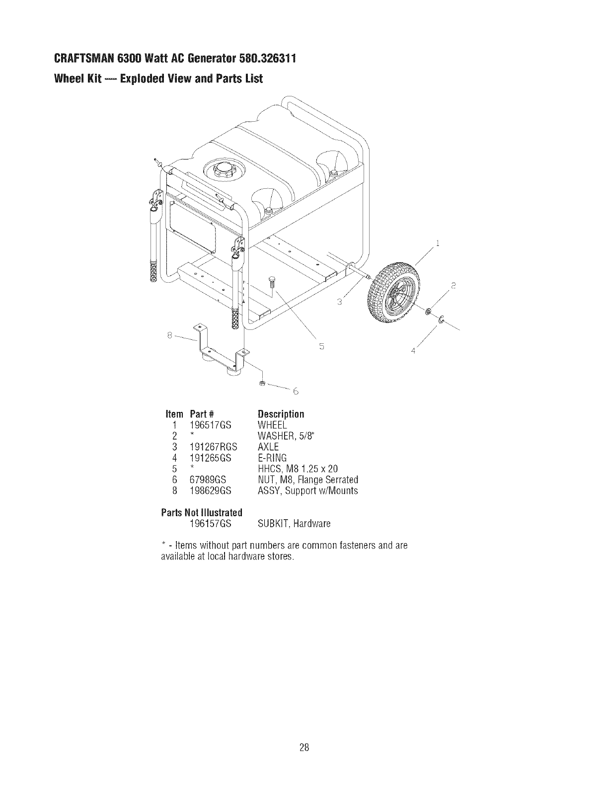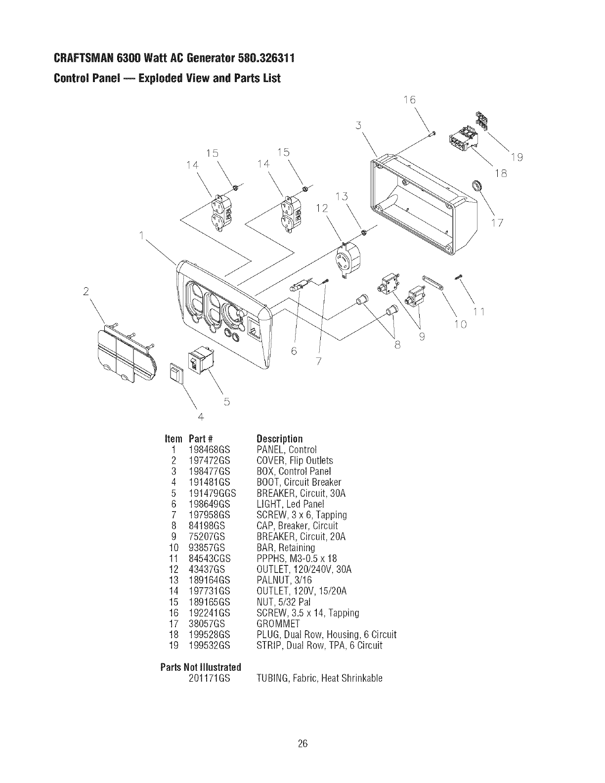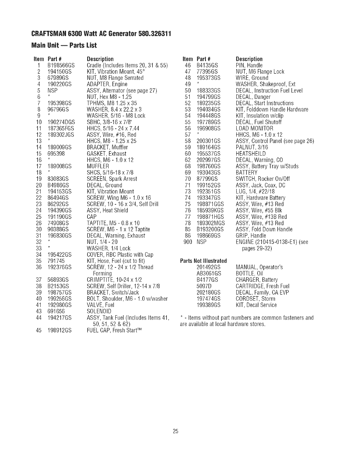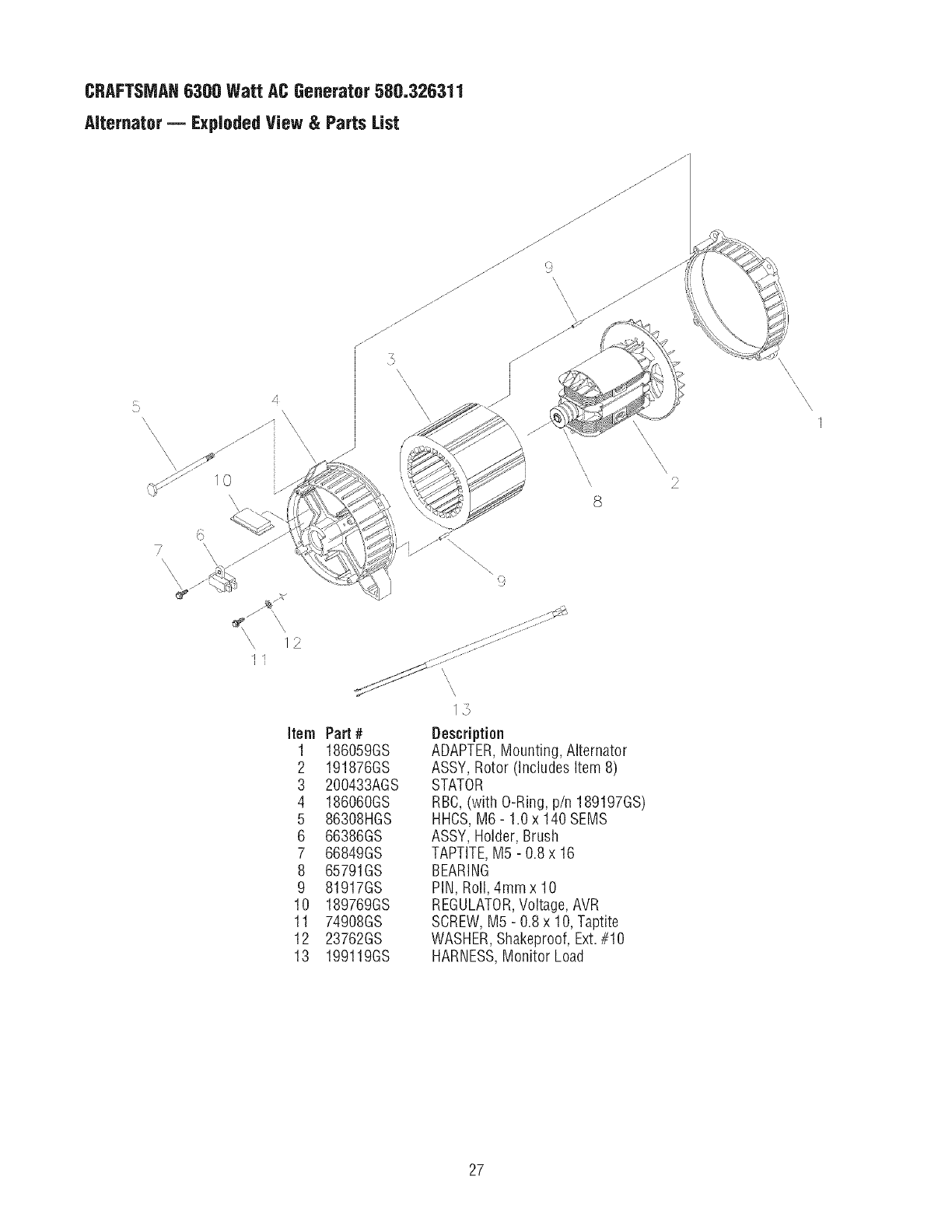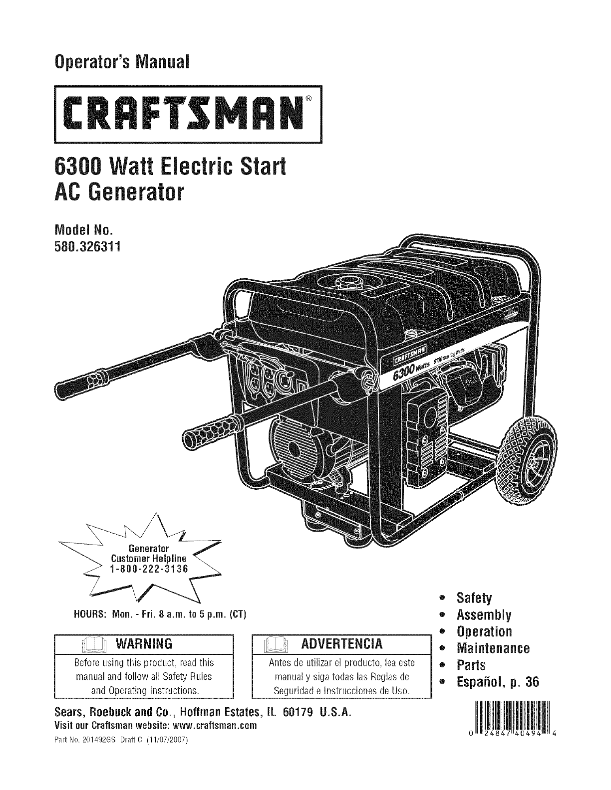 User Manual: Craftsman 580326311 580326311 CRAFTSMAN GENERATOR - Manuals and Guides View the owners manual for your CRAFTSMAN GENERATOR #580326311. Home:Tool Parts:Craftsman Parts:Craftsman GENERATOR Manual